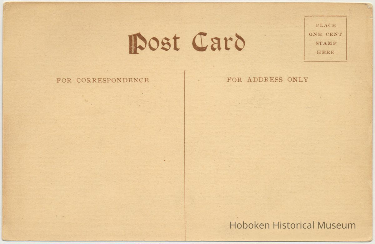 Postcard: photo view of the Dining Room, Admiral Benson Service Club, Hoboken, N.J., no date, ca. 1918-1919. Divided back, unused. 3-3/4" high x 5-5/8" wide. One cent postage required.