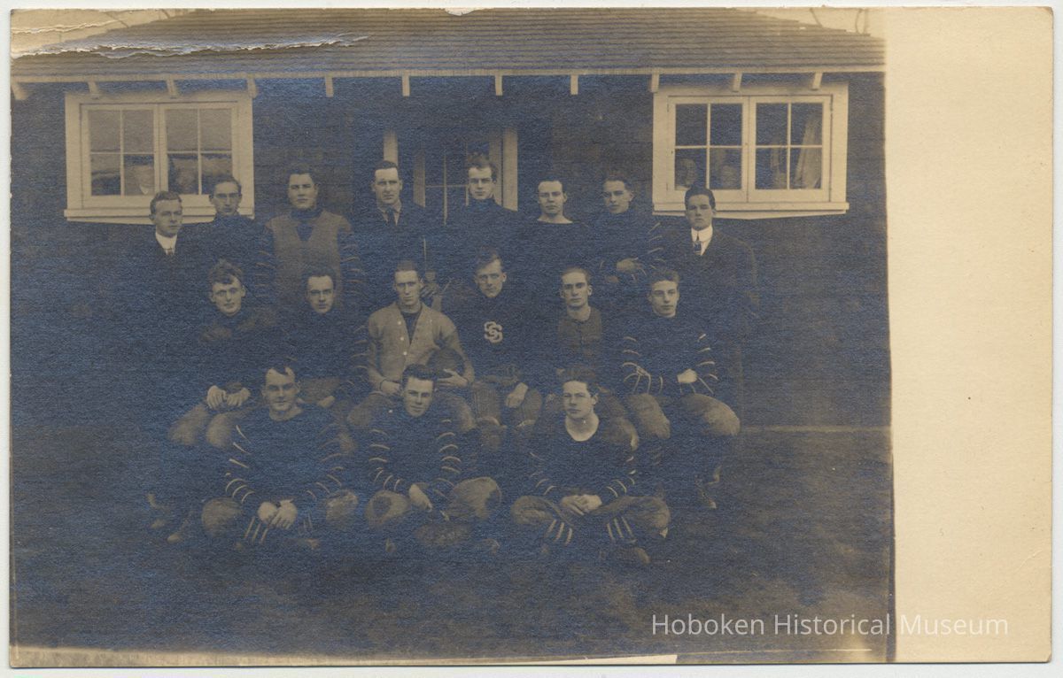 Postcards, 2: Group photo of Stevens Preparatory School football team, Hoboken, n.d., 1911 & either 1910 or 1912.