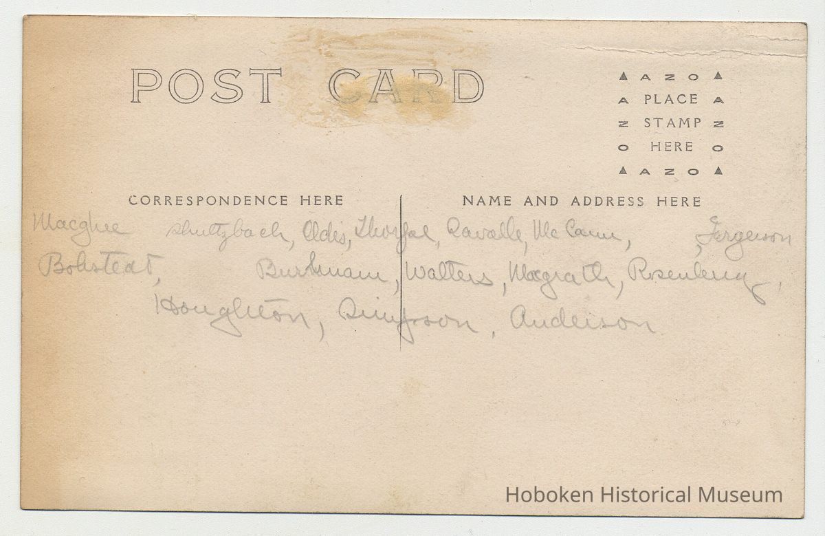 Postcards, two: Group photo of Stevens Preparatory School football team from two different years, Hoboken, no date, one from 1911 and the other either 1910 or 1912. Real photo postcards, 3-3/8" x 5-3/8" wide; divided back; Azo stamp block; unstamped and unposted. Identifications on each in contemporary pencil.