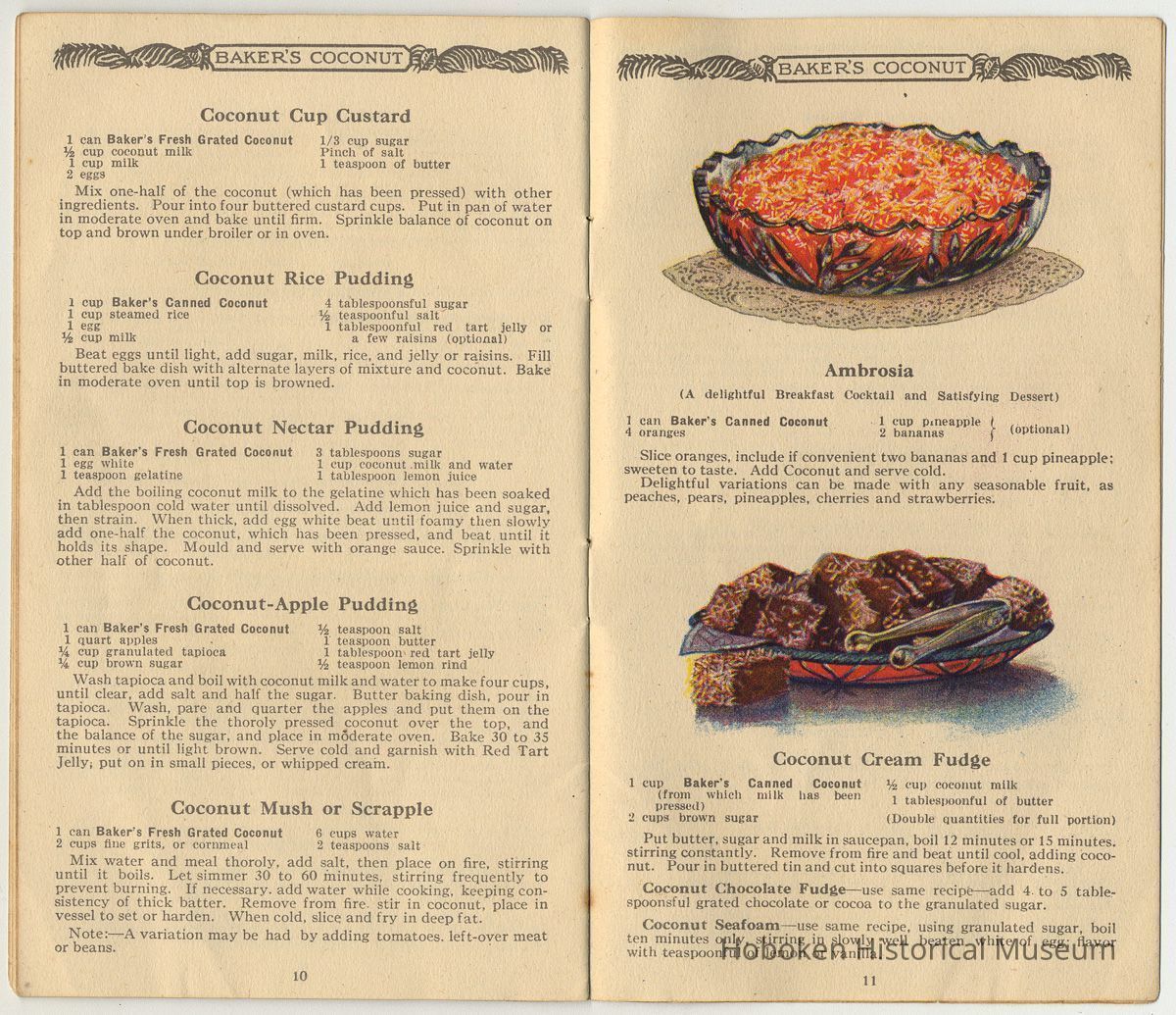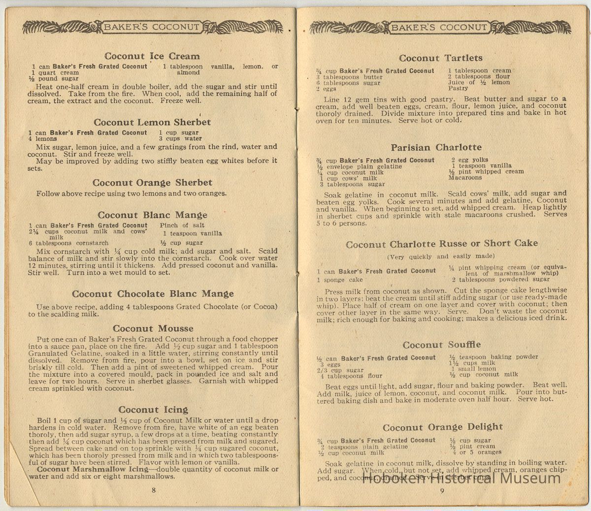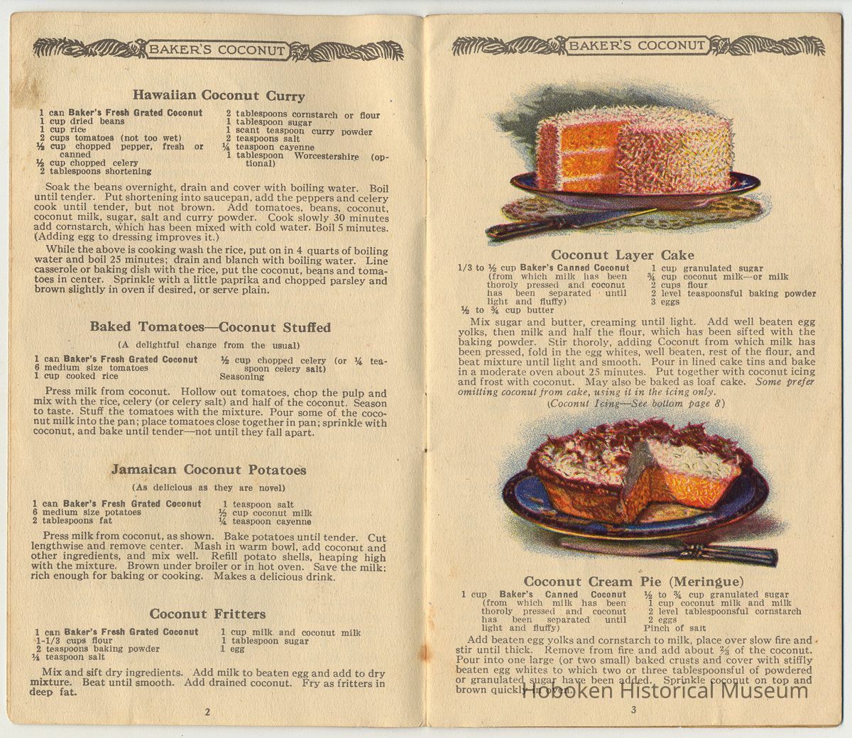 While not created by Franklin Baker in Hoboken, it is held as an example of how the company marketed its product prior to coming to Hoboken in 1924. It is useful to see the establishment of standard recipes for using coconut.