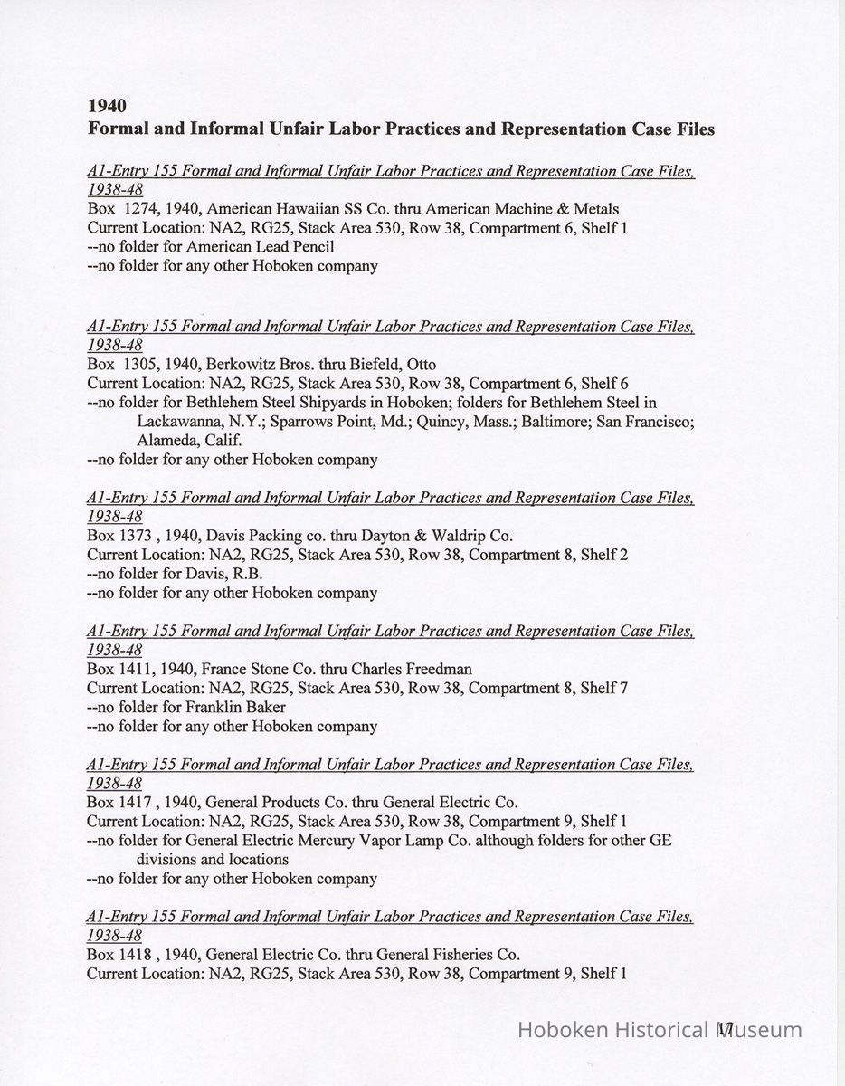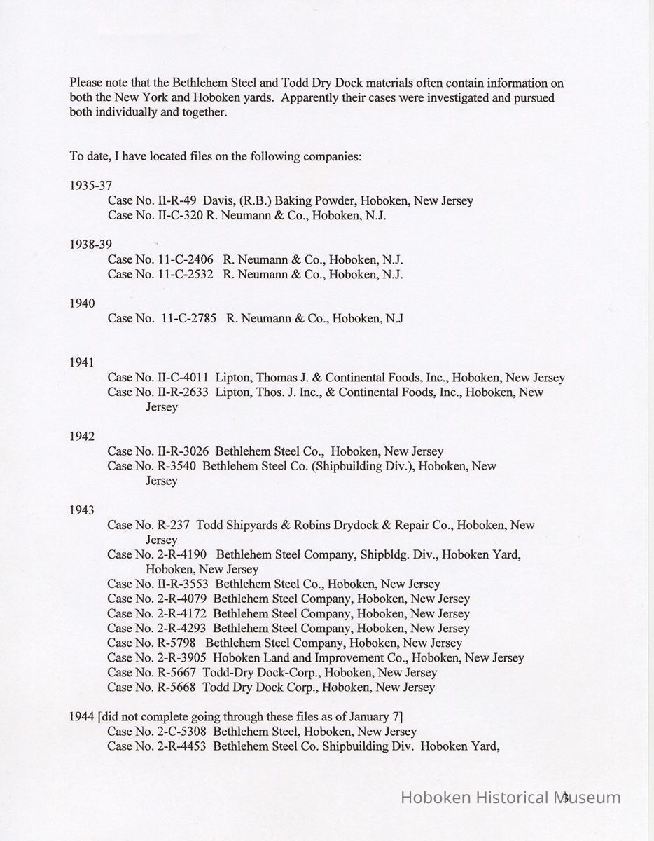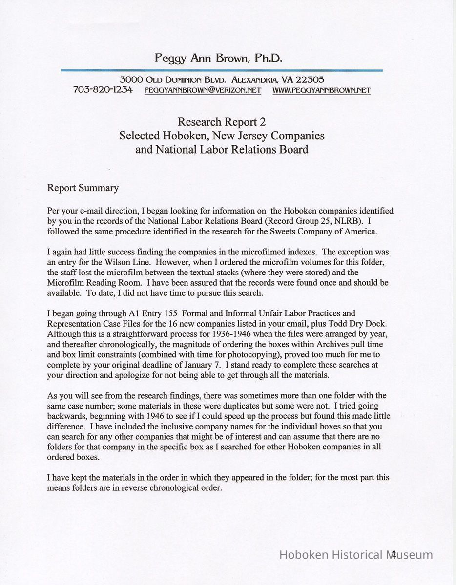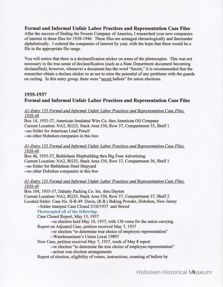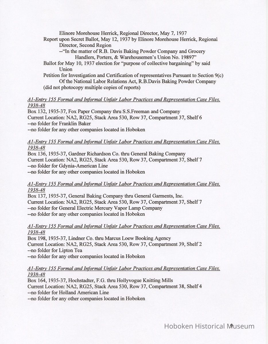 Research Report 2, Parts 1 & 2: Selected Hoboken, N.J. Companies & National Labor Relations Board. (1935-1946). 2011.