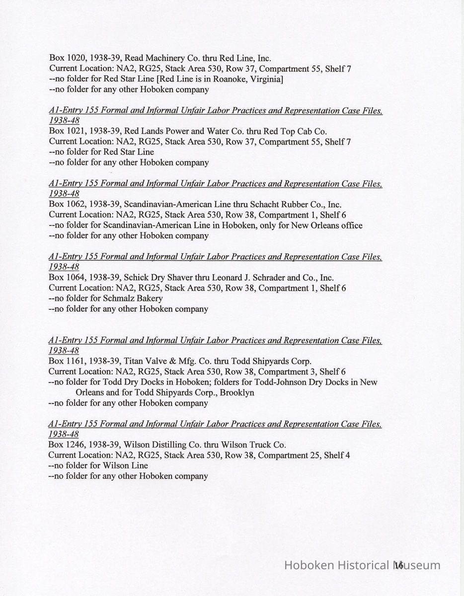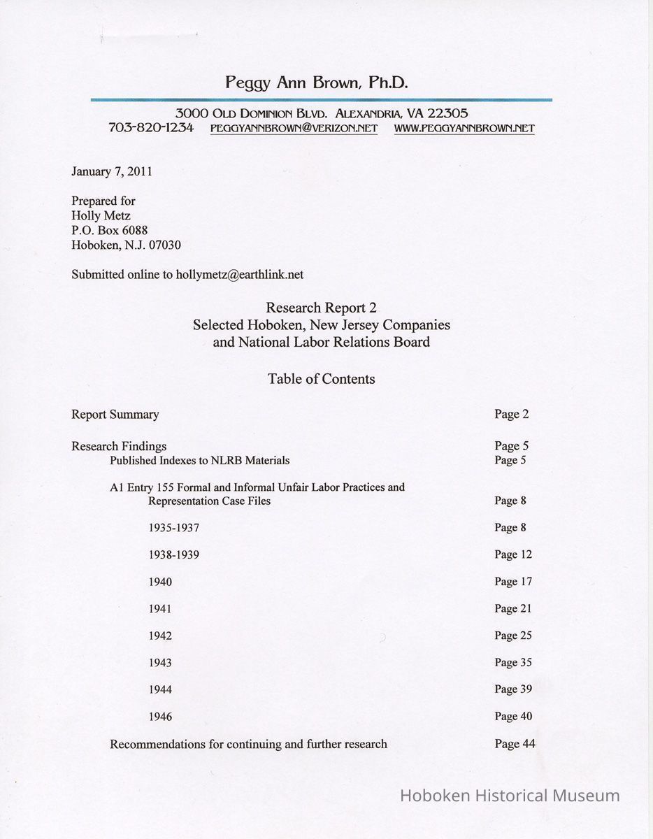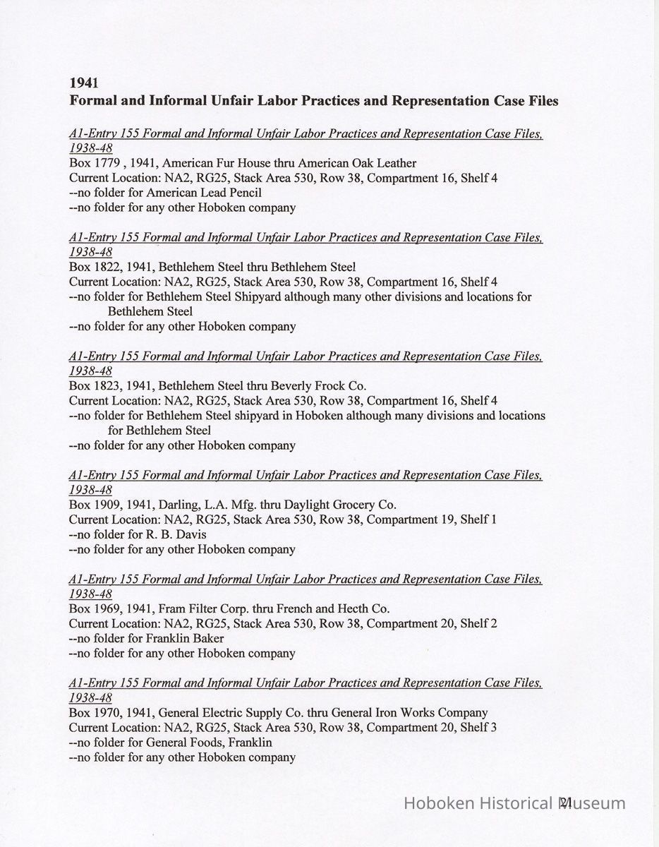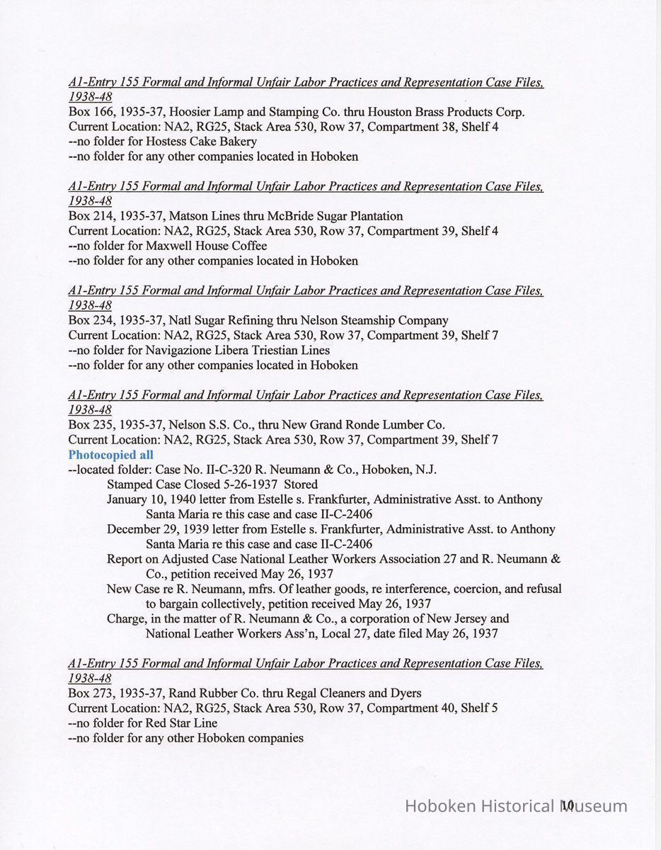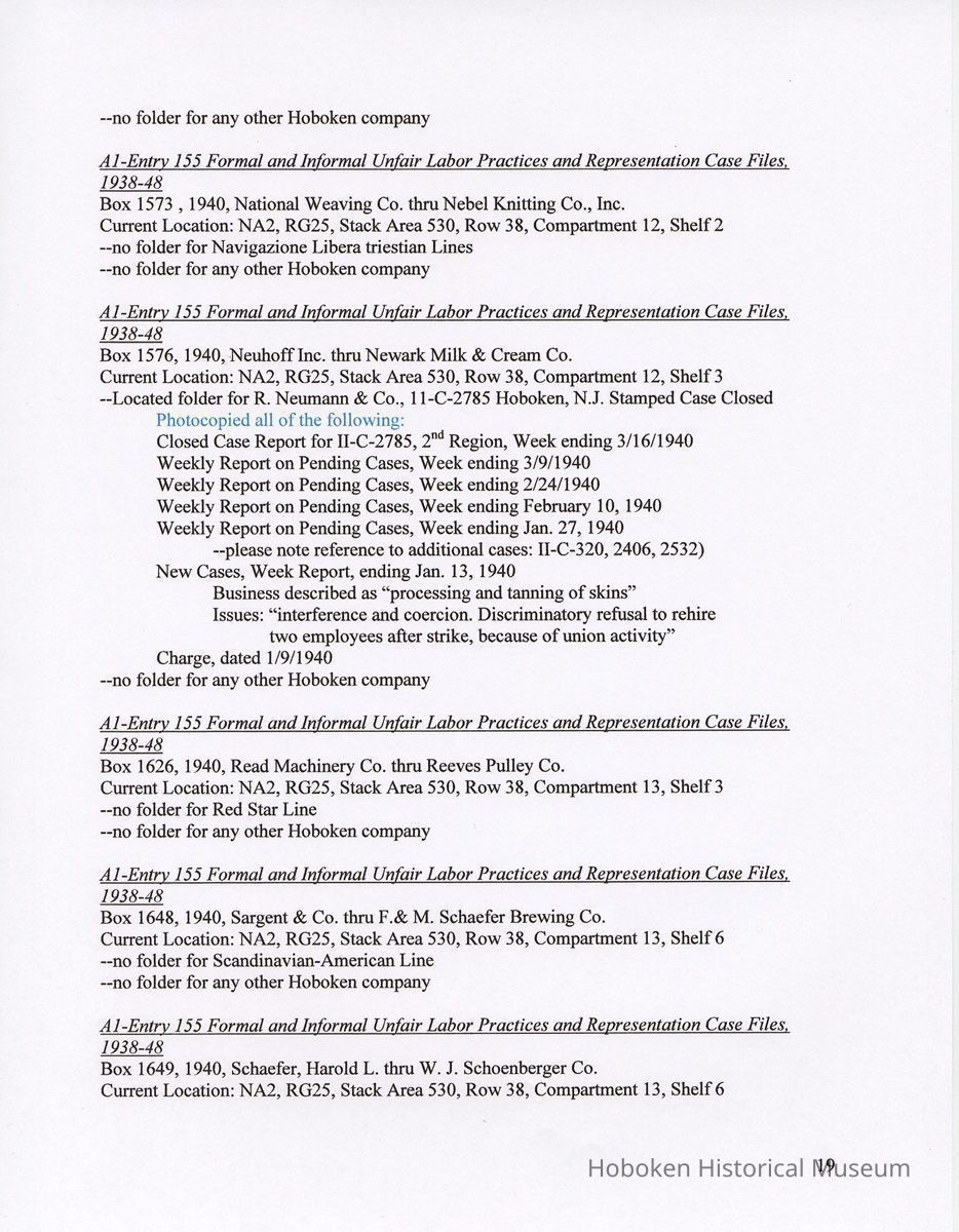 Research Report 2, Parts 1 & 2: Selected Hoboken, N.J. Companies & National Labor Relations Board. (1935-1946). 2011.