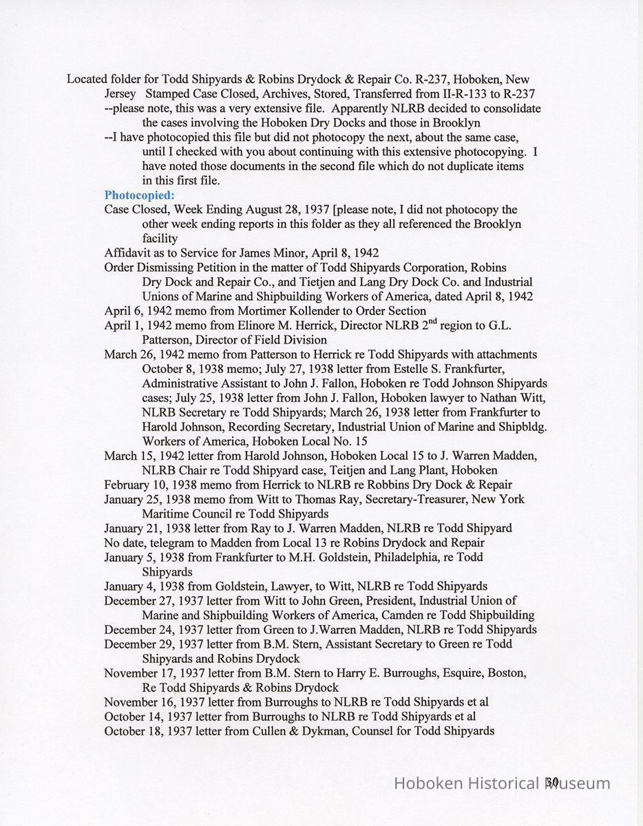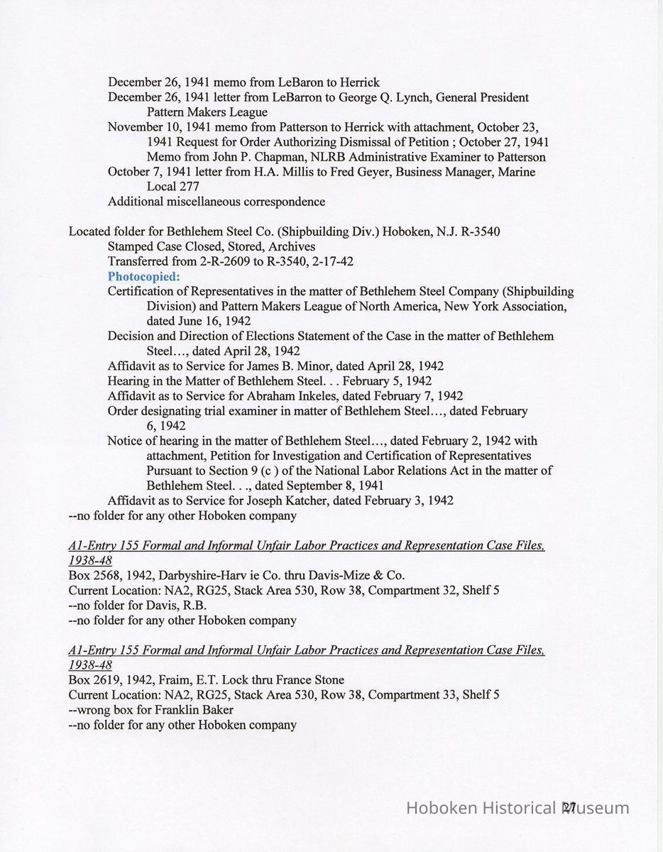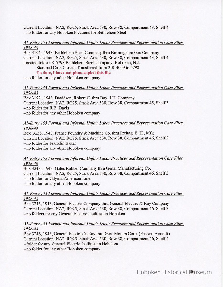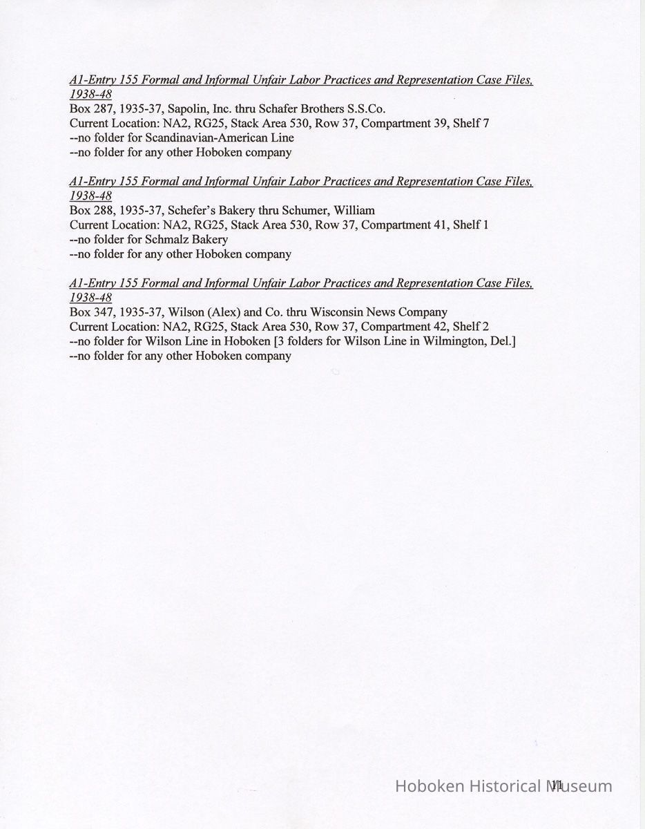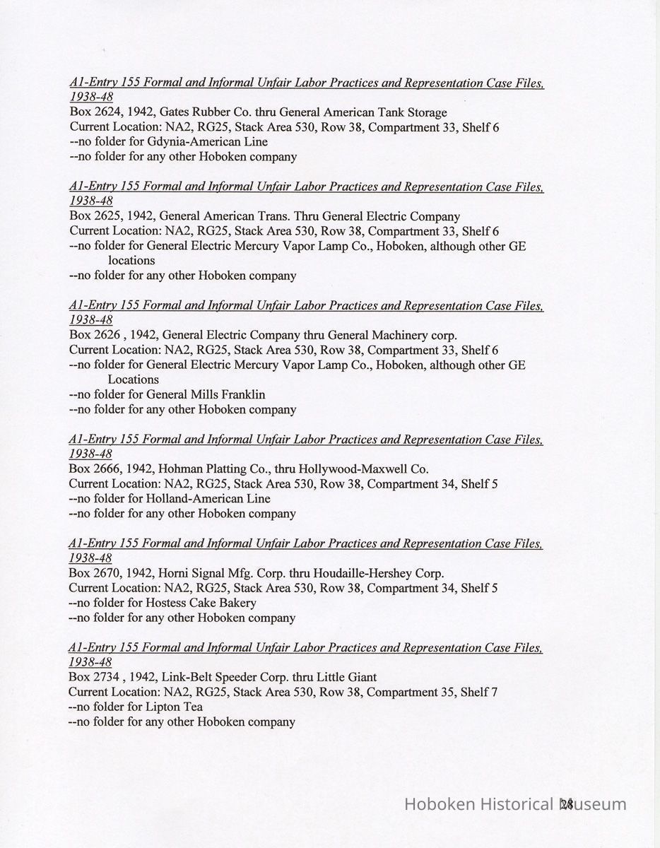 Research Report 2, Parts 1 & 2: Selected Hoboken, N.J. Companies & National Labor Relations Board. (1935-1946). 2011.
