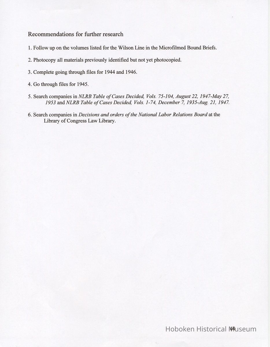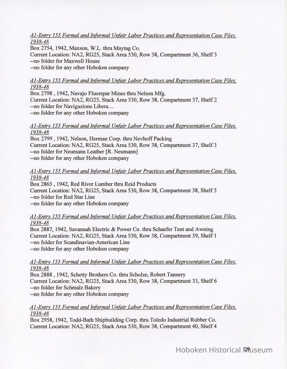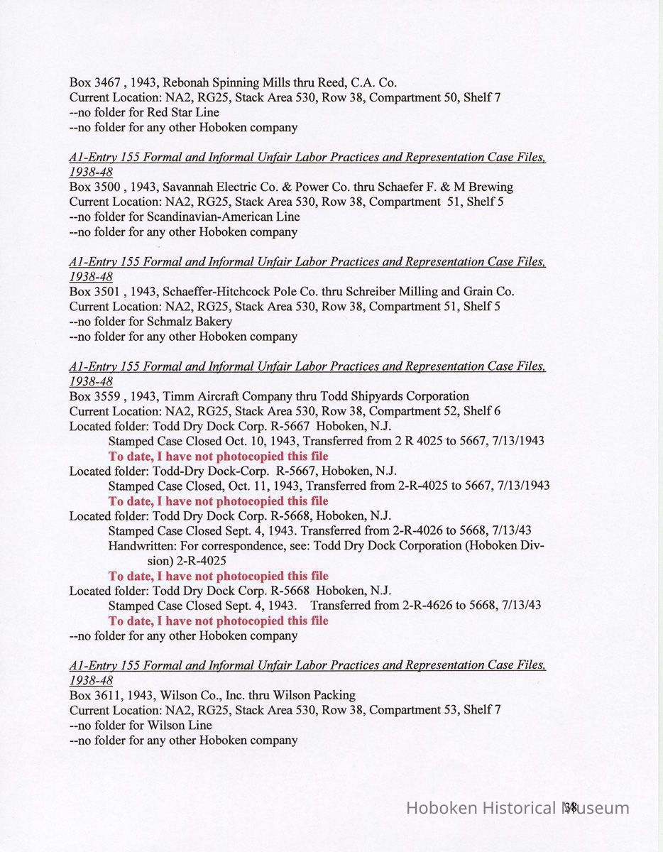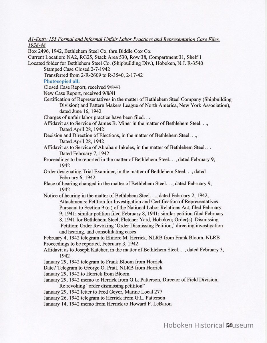Research Report 2, Parts 1 & 2: Selected Hoboken, N.J. Companies & National Labor Relations Board. (1935-1946). 2011.