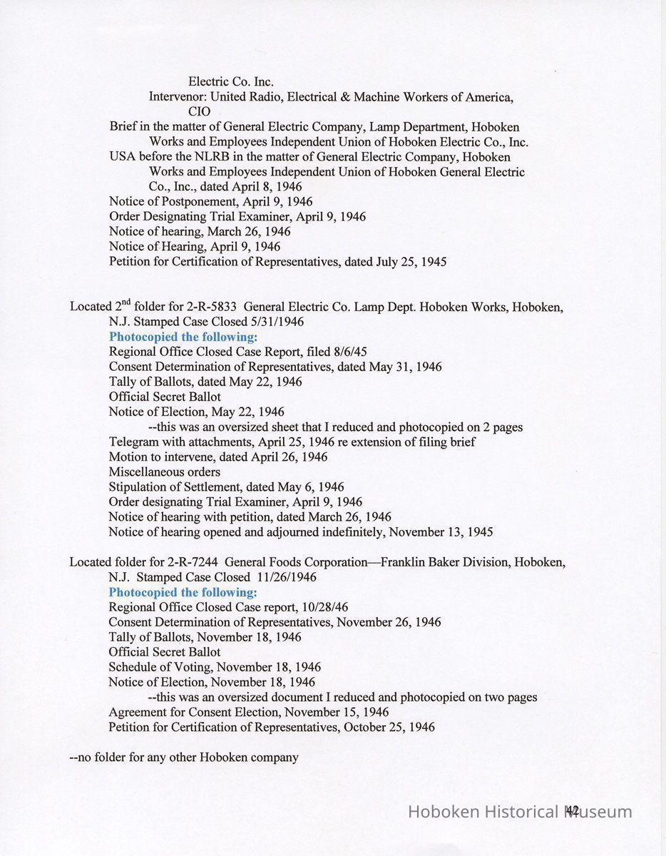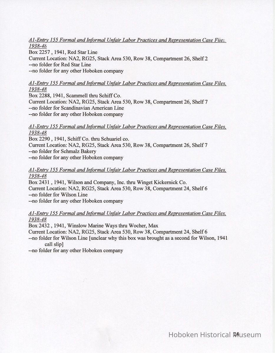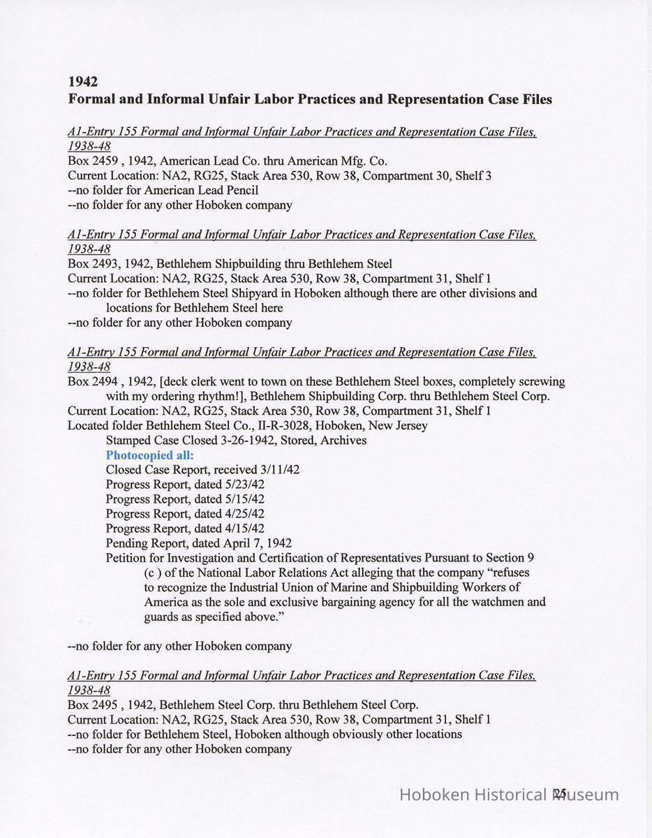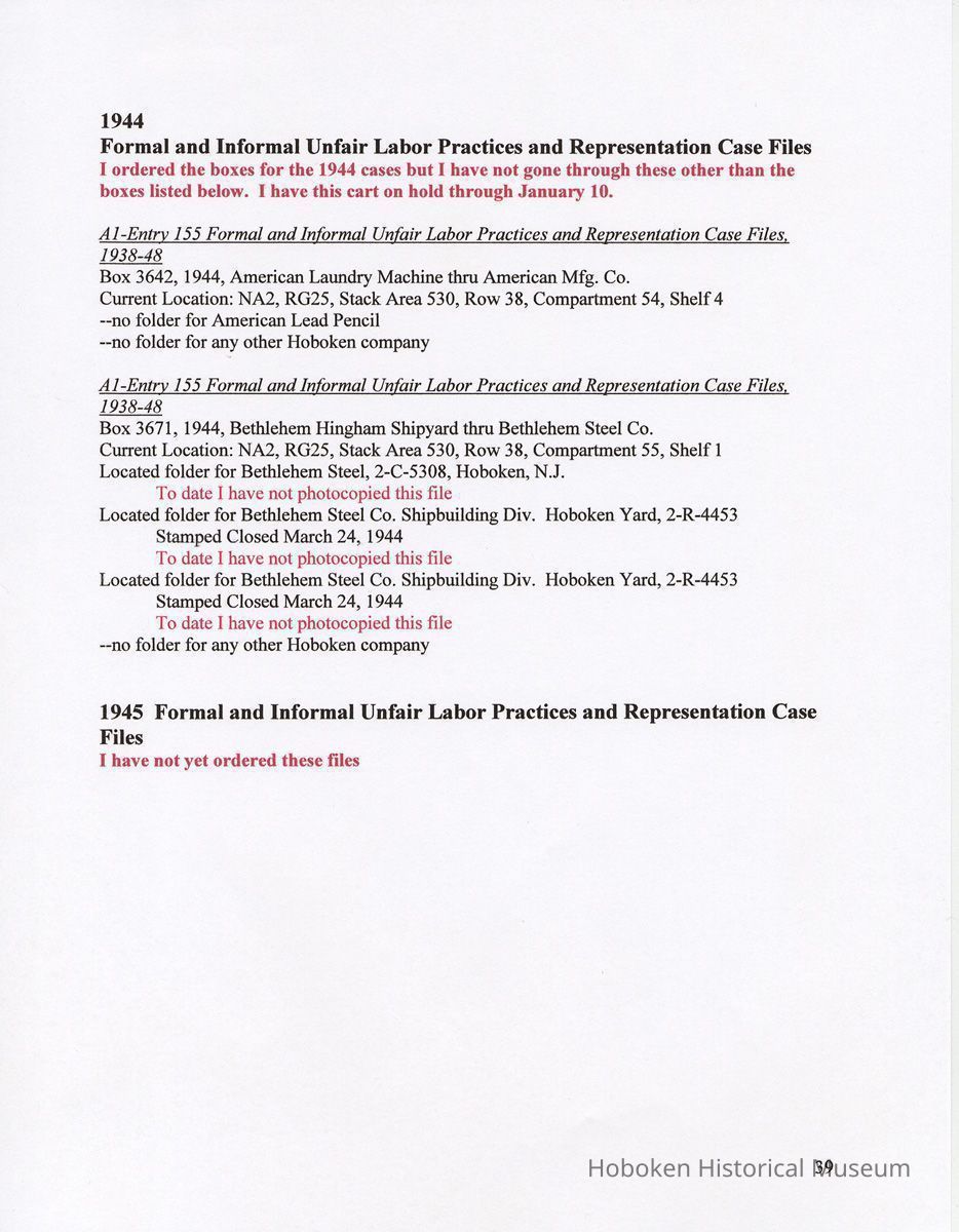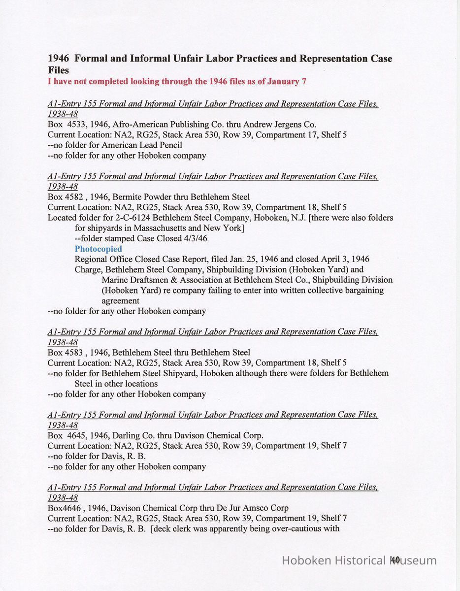Research Report 2, Parts 1 & 2: Selected Hoboken, N.J. Companies & National Labor Relations Board. (1935-1946). 2011.