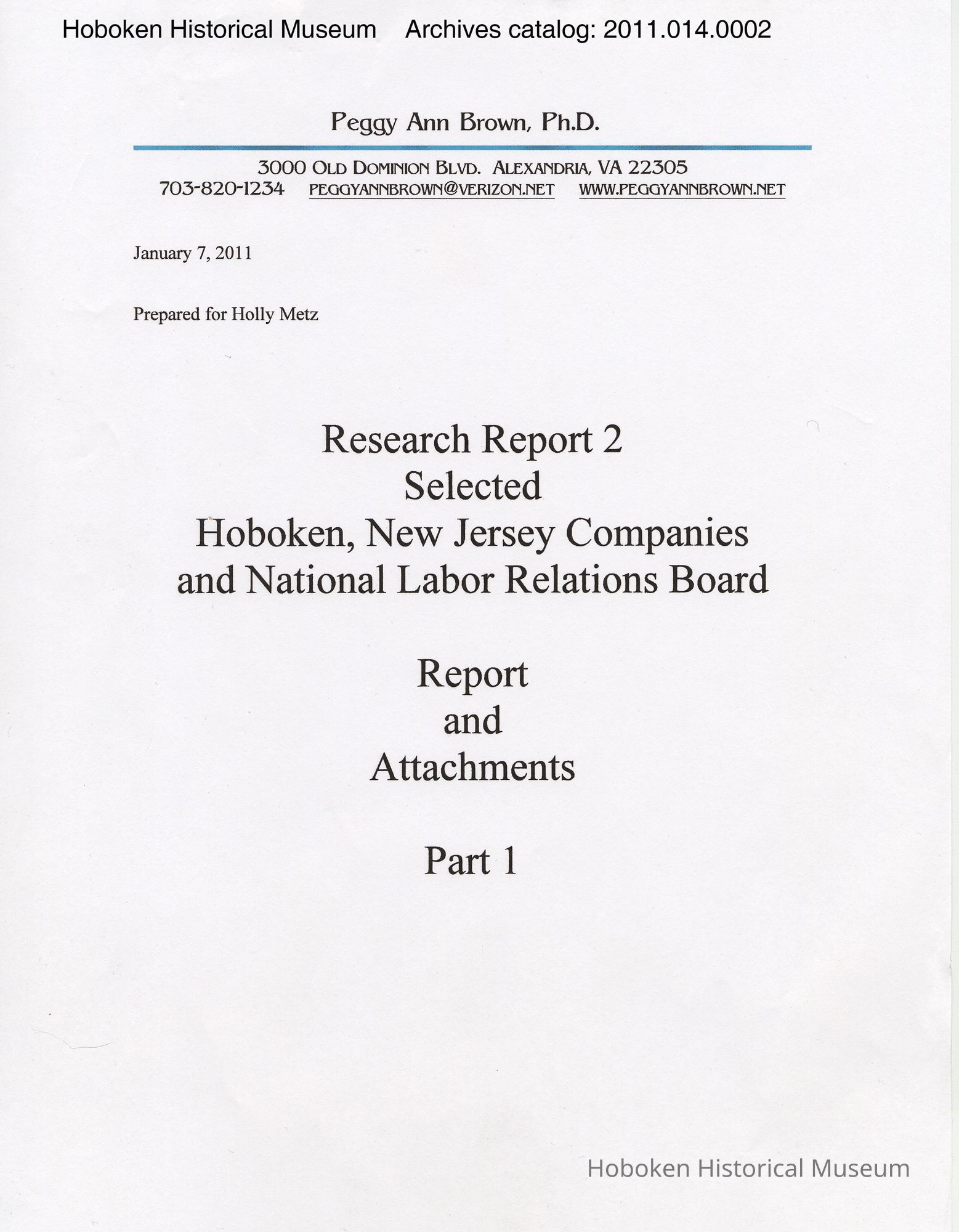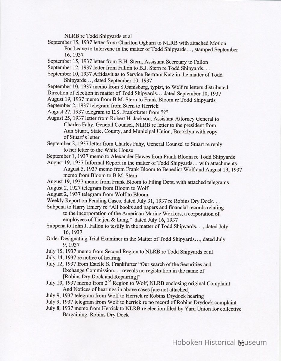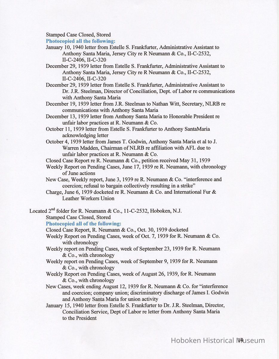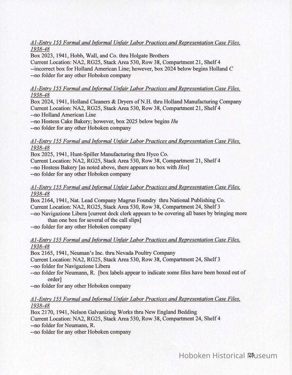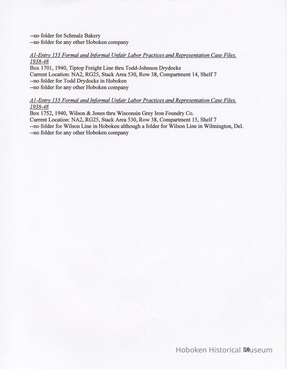 Research Report 2, Parts 1 & 2: Selected Hoboken, N.J. Companies & National Labor Relations Board. (1935-1946). 2011.