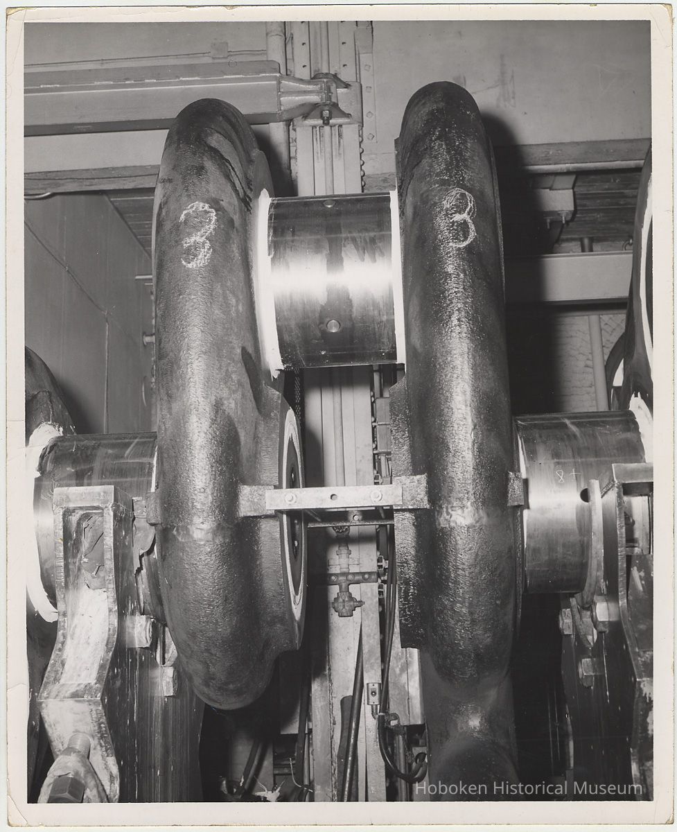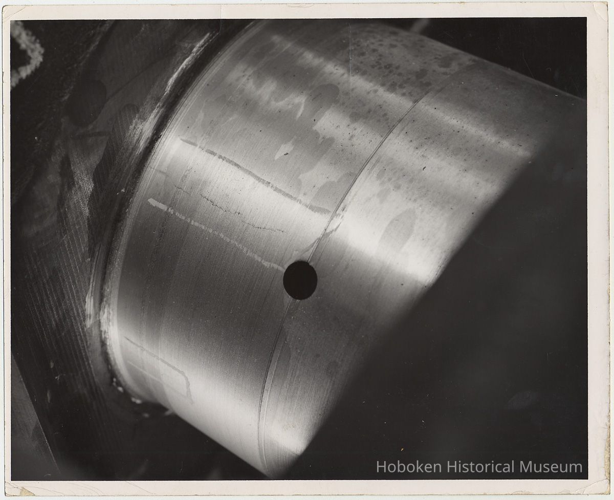B+W photos, 4, of part being machined at Bethlehem Steel Shipyard, Hoboken, n.d, ca. 1955-1957.