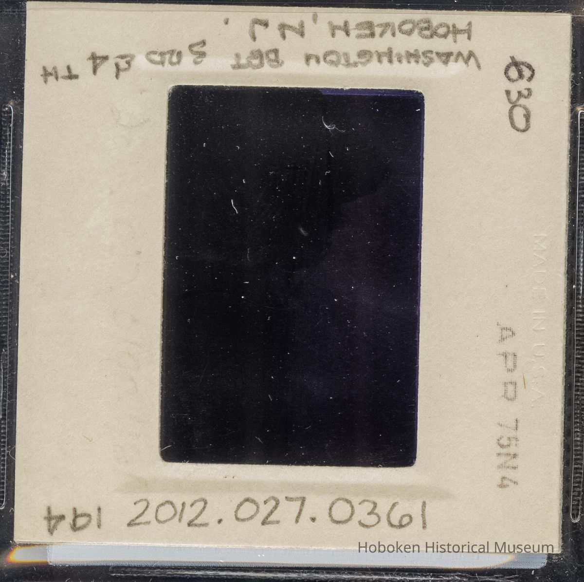 Color slide of detail view of cornice, bracket, frieze and window head at an unidentified building on Washington between 3rd and 4th