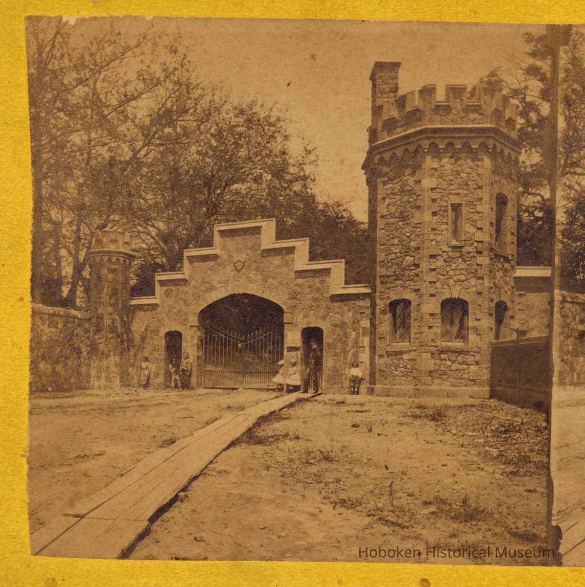 Stereoview card: American Scenery. Hoboken. [Stevens Castle, Gatehouse or Gateway]] No place, publisher or date, circa 1890-1920.