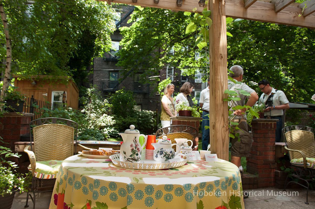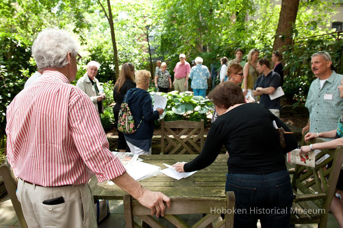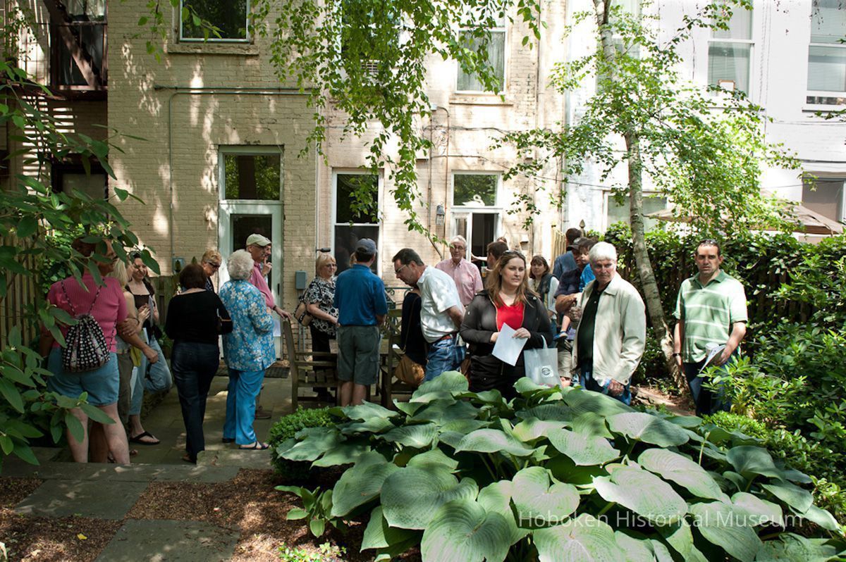 Color photographs, thirty-two, of 2011 Secret Garden Tour presented by Hoboken Historical Museum, June 4, 2011. Digital images only. Photographs taken by Jayne Dunsmuir (any use, please credit: Photo by Jayne Dunsmuir). People are not identified. Tiffs media archive. PDF on file.