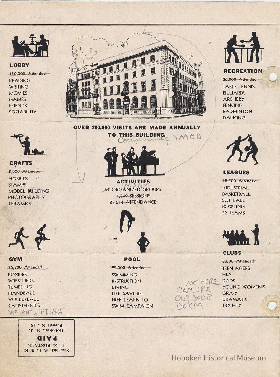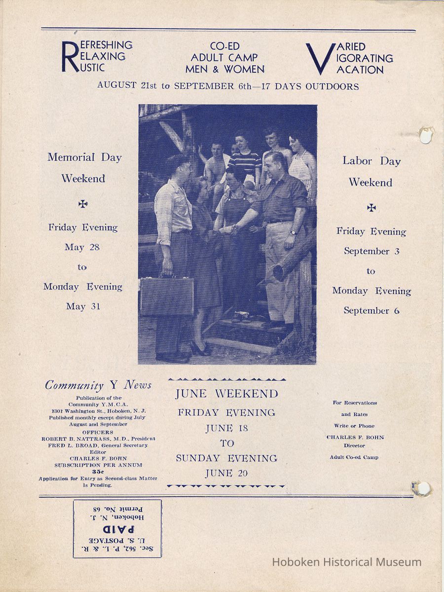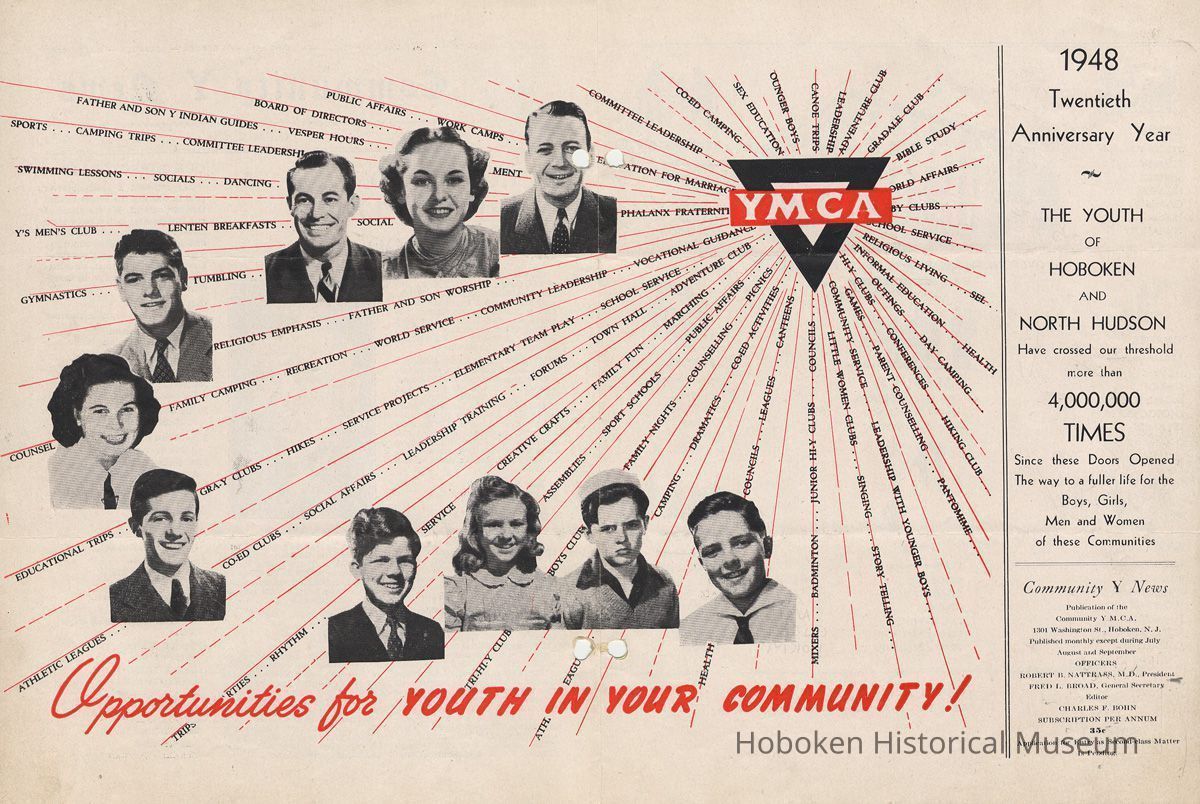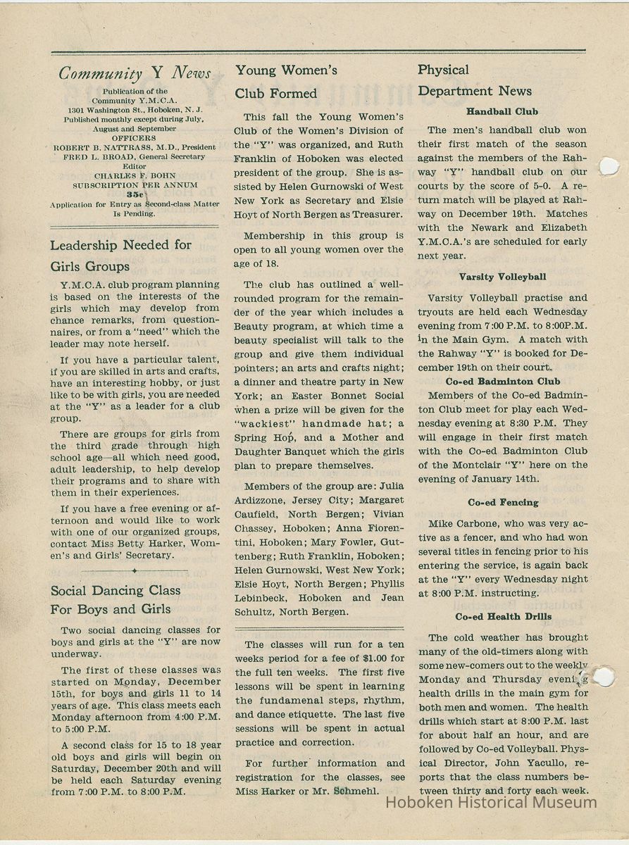 Newsletter: Community Y News, Hoboken N.J. Vol. 2, Nos. 1 to 3 [Second Series], Dec. 1947 - March 1948.[Published by the Young Men's Christian Association, 1301 Washington St., Hoboken] Single folio, 7" x 9-7/8" high. Issues were three-hole punched.