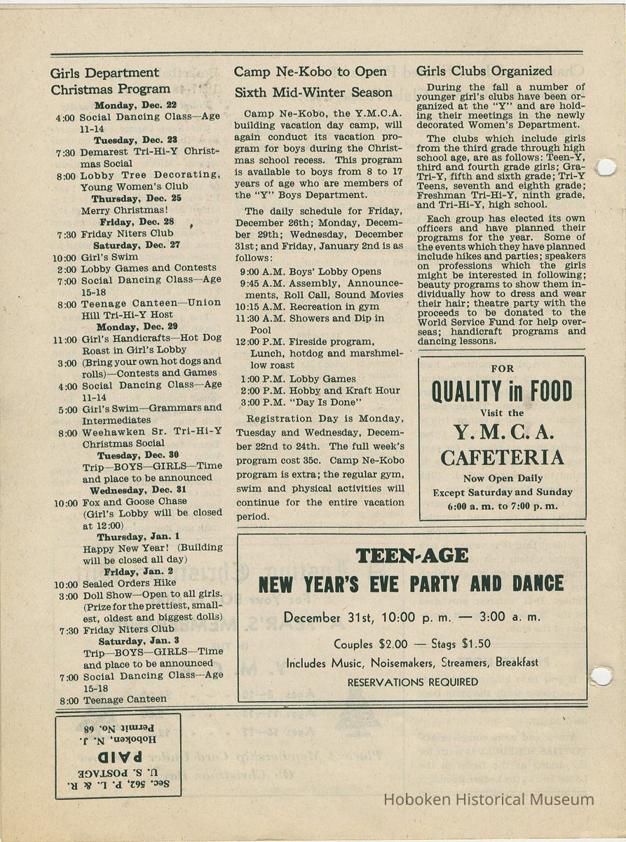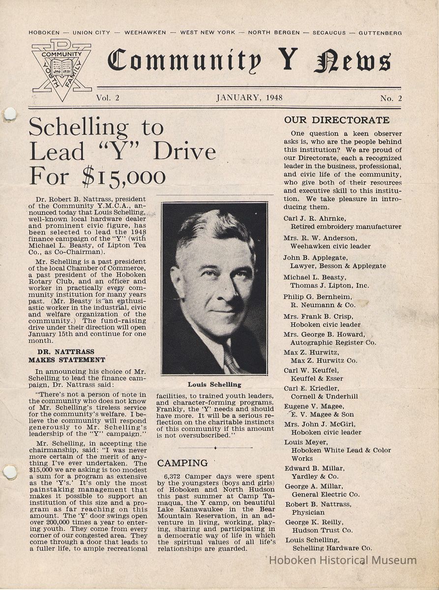 Newsletter: Community Y News, Hoboken N.J. Vol. 2, Nos. 1-3 [2nd Series], Dec. 1947 - March 1948. Hoboken YMCA.