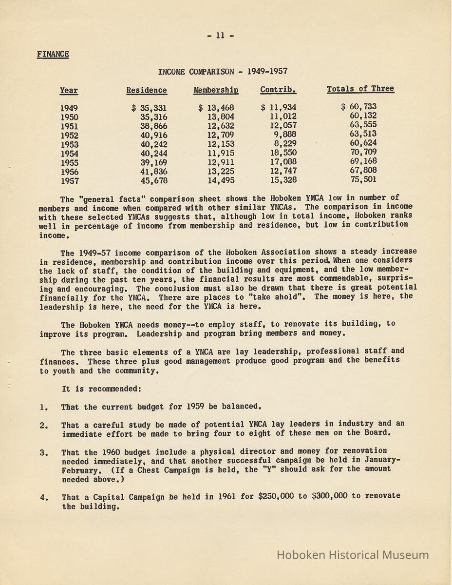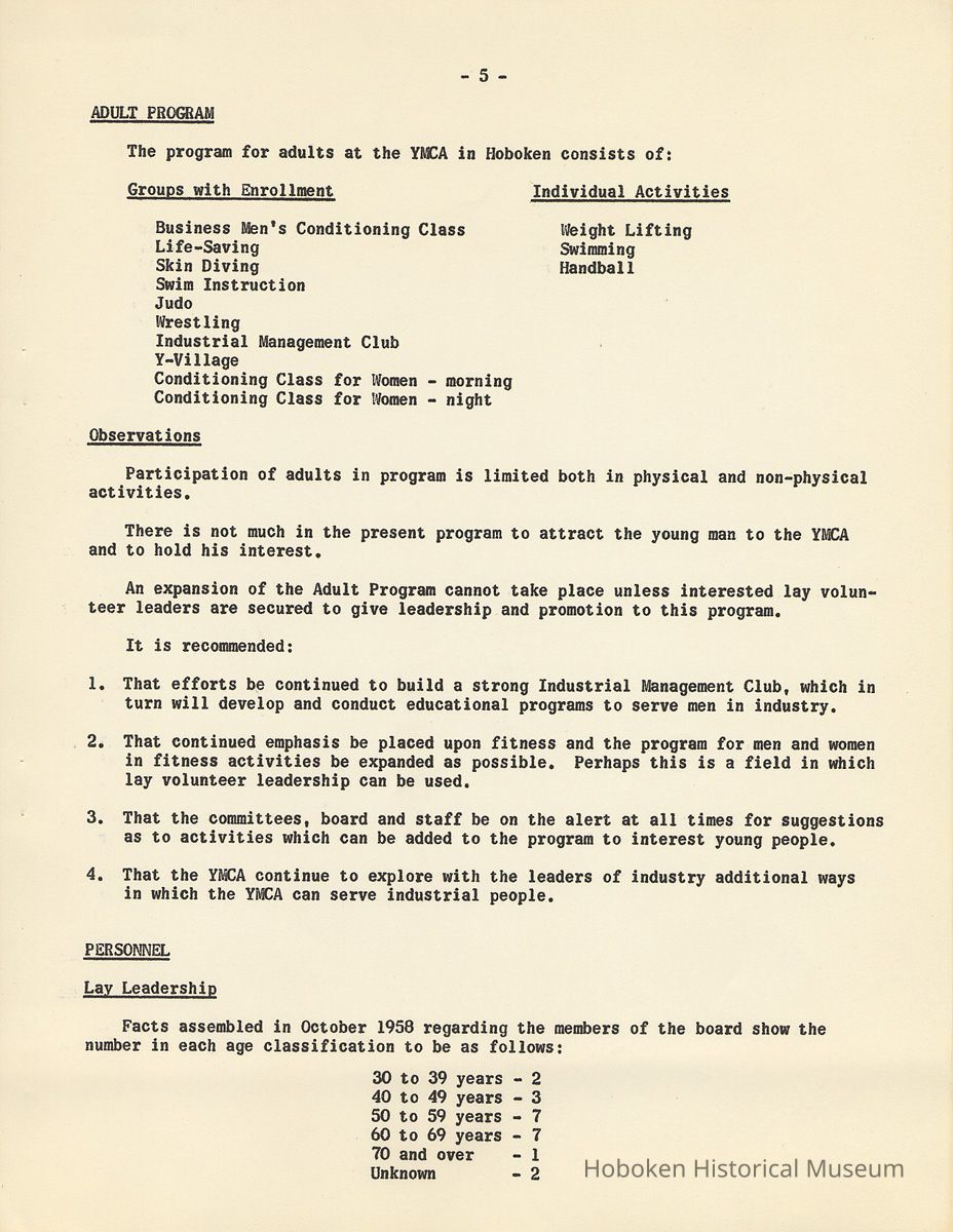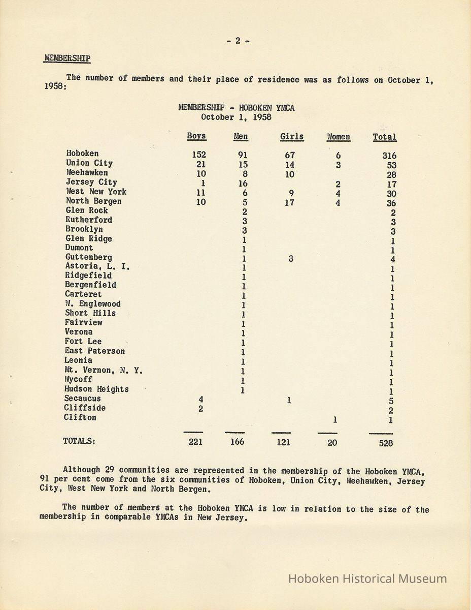 Report: A Study of the Hoboken YMCA, 1958-1959.