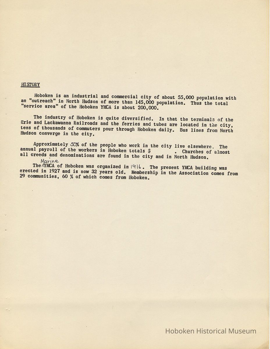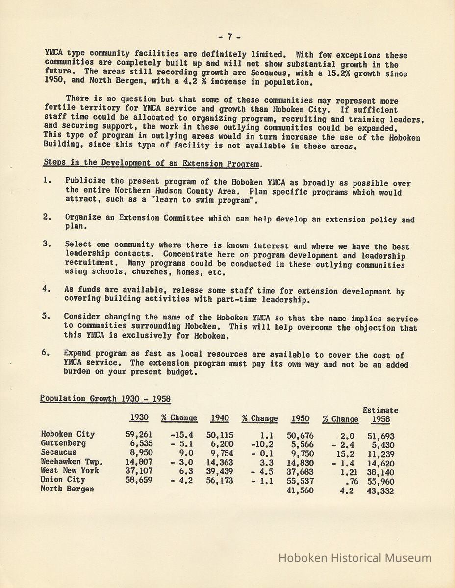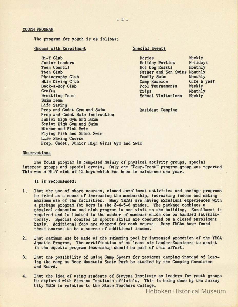 Report: A Study of the Hoboken YMCA, 1958-1959.