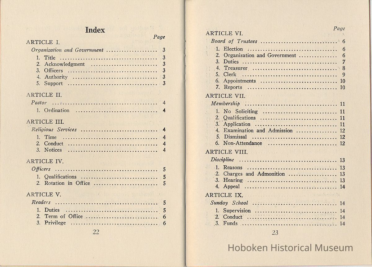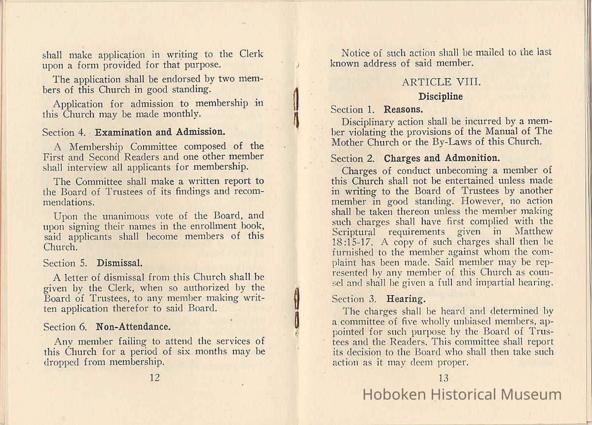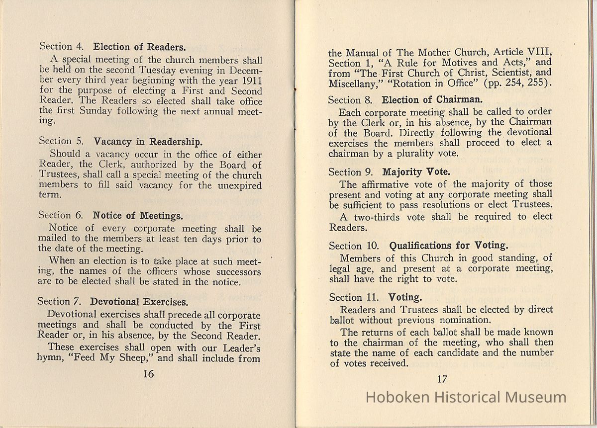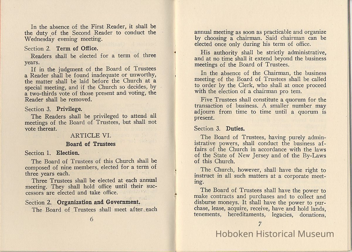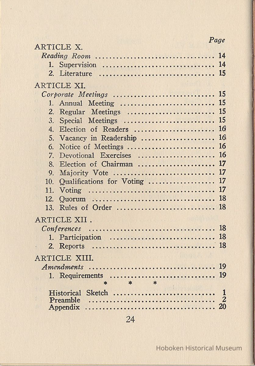 By-Laws of First Church of Christ, Scientist of Hoboken, N.J., n.d., ca. 1931-1960.