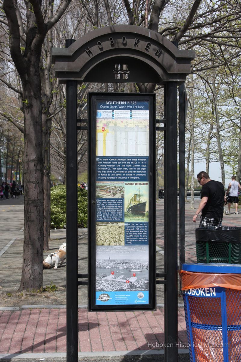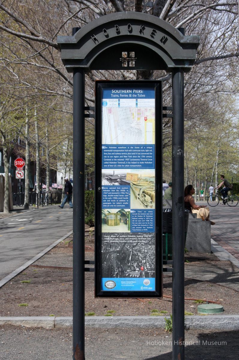 04 view of historical panel in waterfront kiosk at Newark St. and Frank Sinatra Drive; view is north.