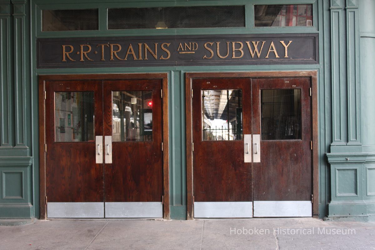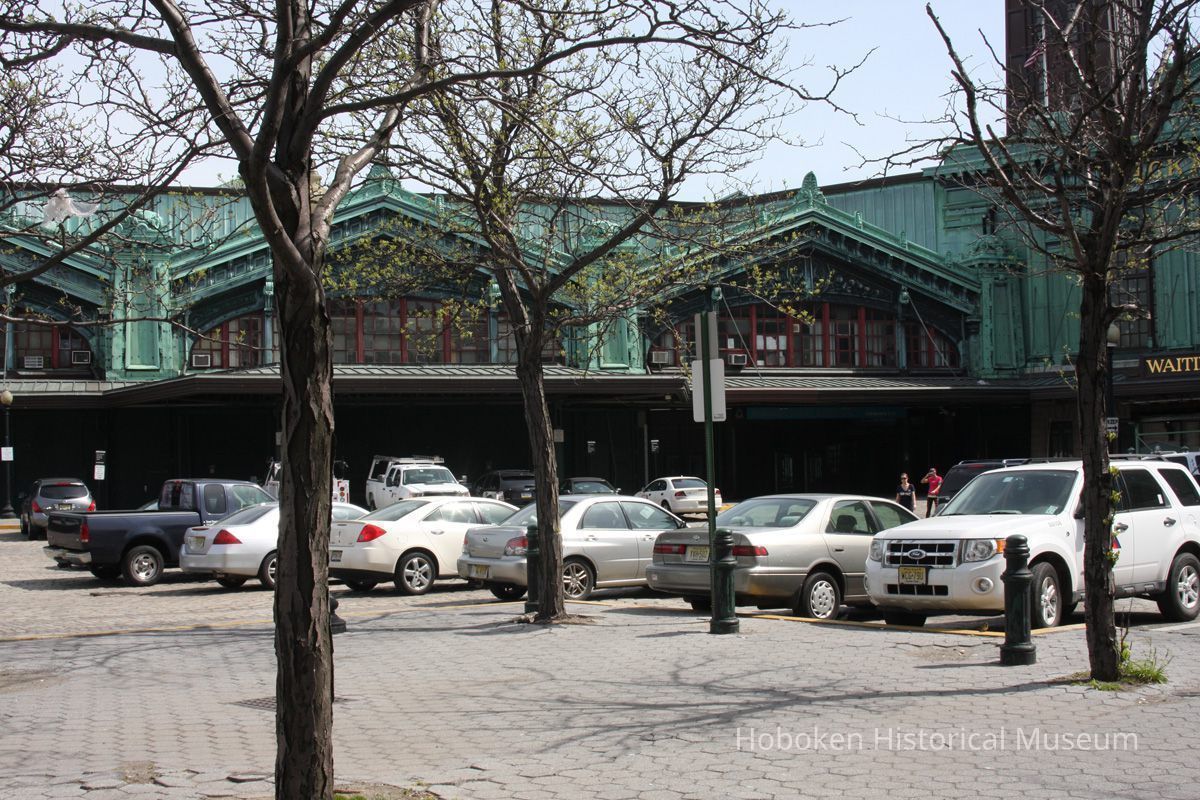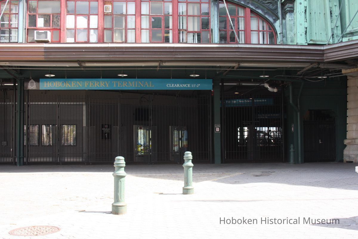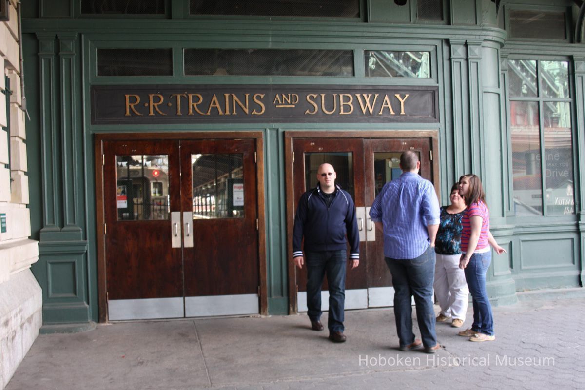 Color photos, 13, of Warrington Plaza signs, plaque & exterior of Hoboken Terminal, Hoboken, Apr. 14, 2012.