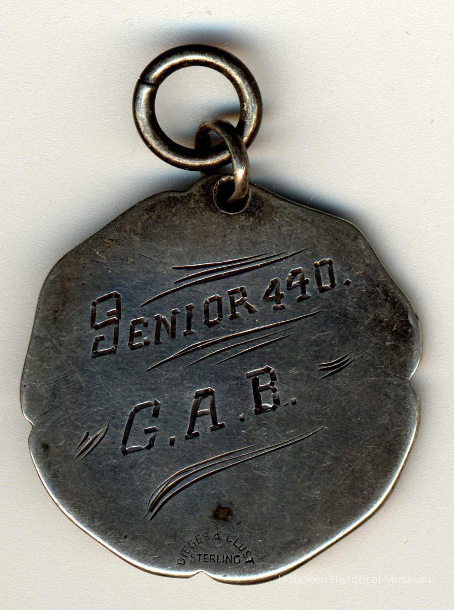 Sterling silver medal for Safe & Sane Fourth, Hoboken, N.J., 1914. Engraved on reverse: Senior 440, G.A.B.