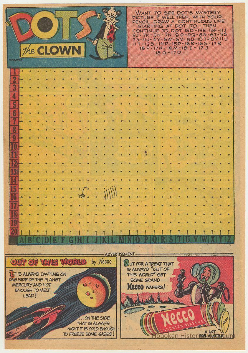 The multi-panel strip promoted Tootsie Rolls which were made in Hoboken and the wrapped product plus Tootsie Pops are depicted in the ad. Artwork credited to Bill Schreiber