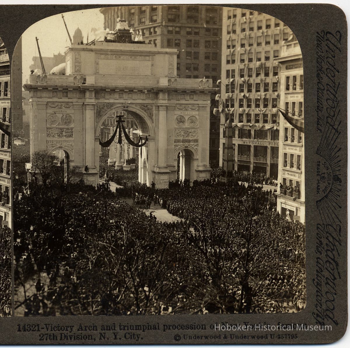 Stereoview: 14321 Victory Arch & Triumphal Procession of New York's Famous 27th Division, N.Y. City. [March 25, 1919] Underwood & Underwood. N.d., ca. 1919-1920.