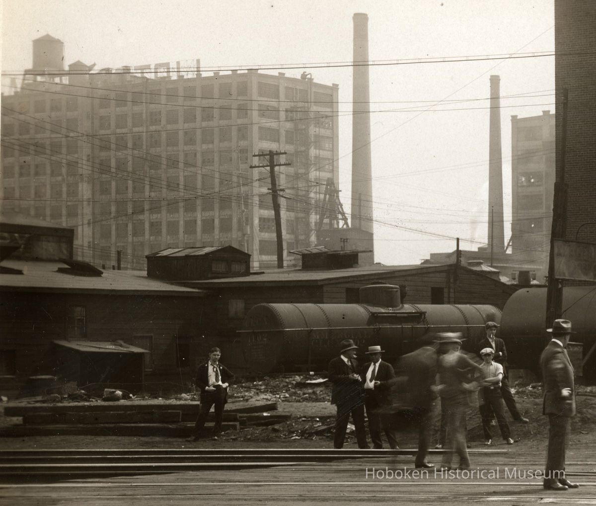 A left detail image shows the Hoboken Manufacturers Terminal building in the background with "Lipton" of the Lipton Tea rooftop sign partially visible.