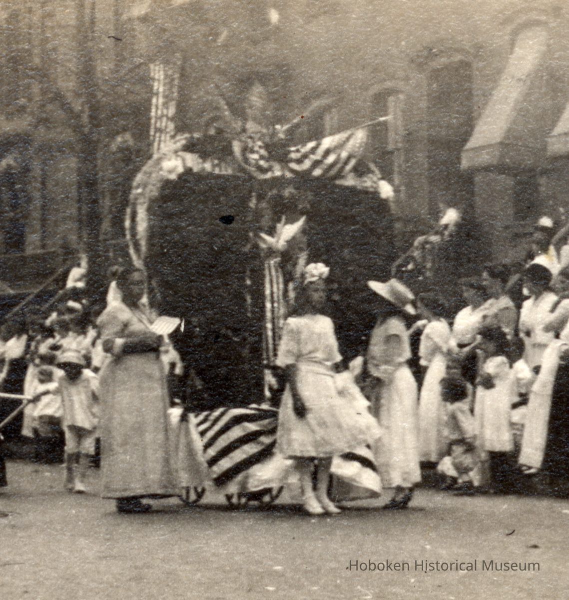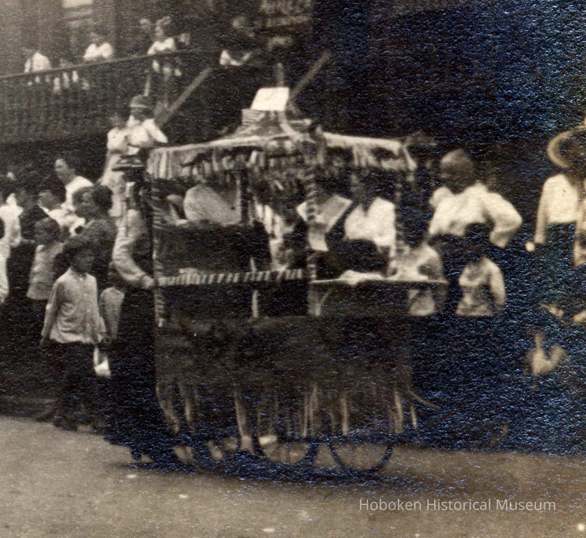 The photo is from a group of 6 baby parade photos, .0004 to .0009, that were apparently from the Elysian Camera Club, 307 Washington Street, and taken by a club member, probably Hermann Jaffee. It is a small, but rich series with text describing the event and the scenes (although sometimes confusingly.)