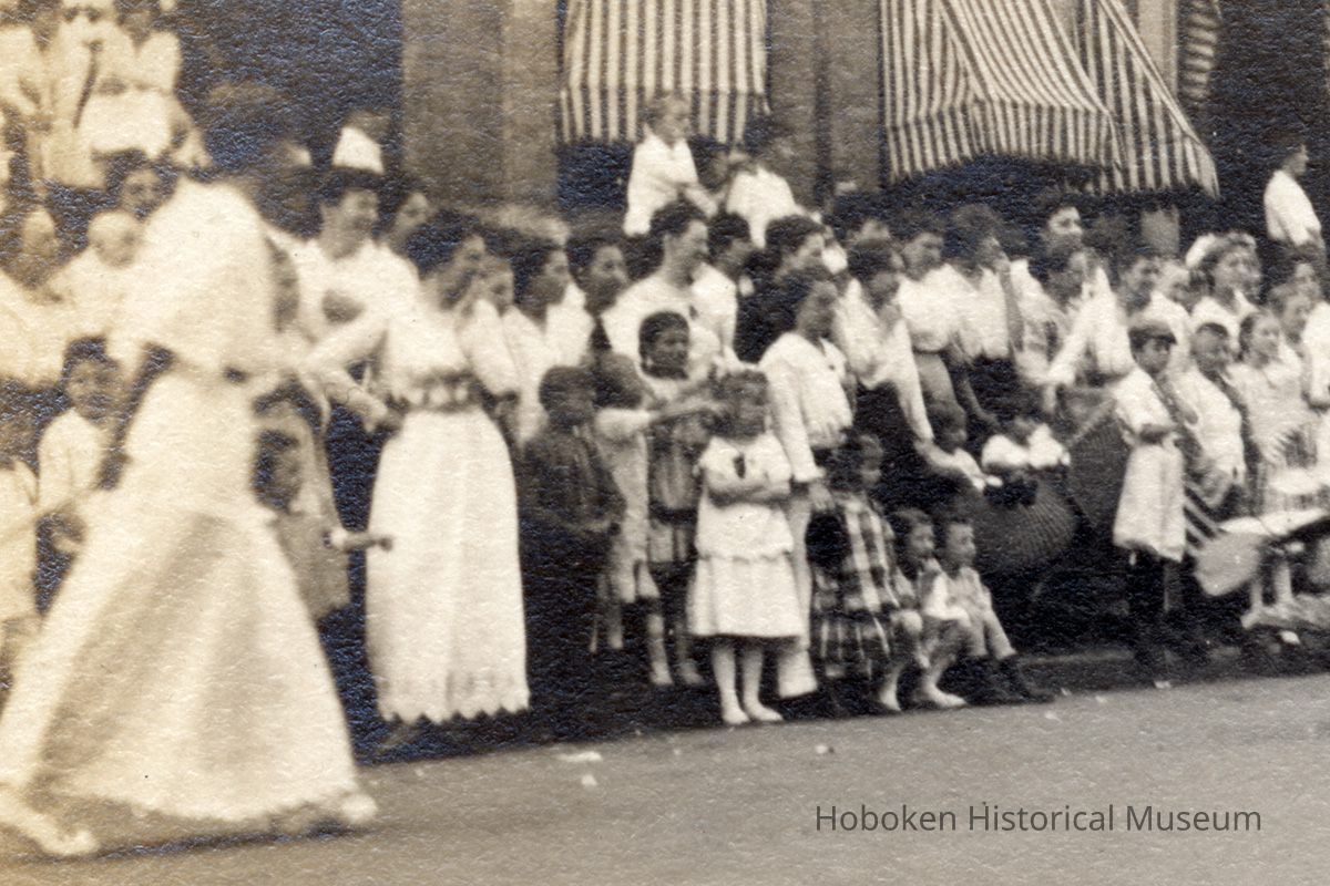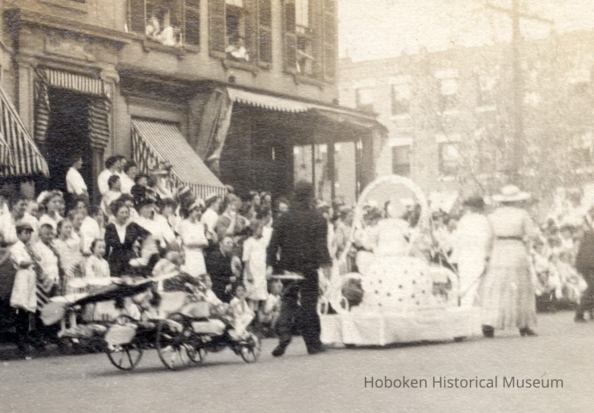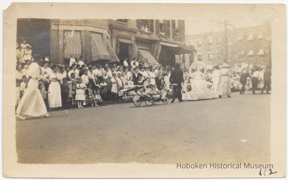 Sepia tone photo of Third Annual Hoboken Baby Parade on Garden Street between Tenth and Eleventh Streets, Hoboken, September 8, 1915.