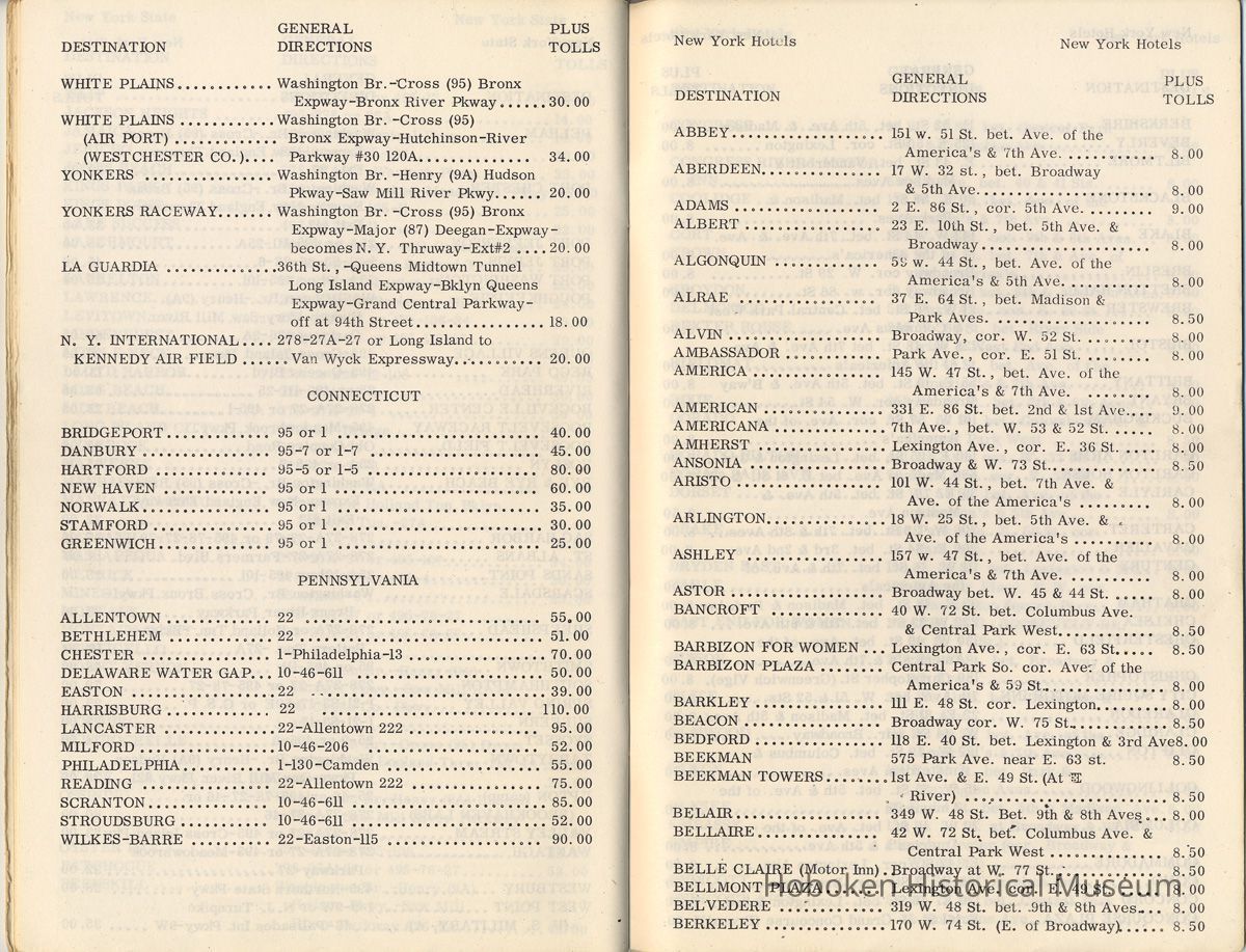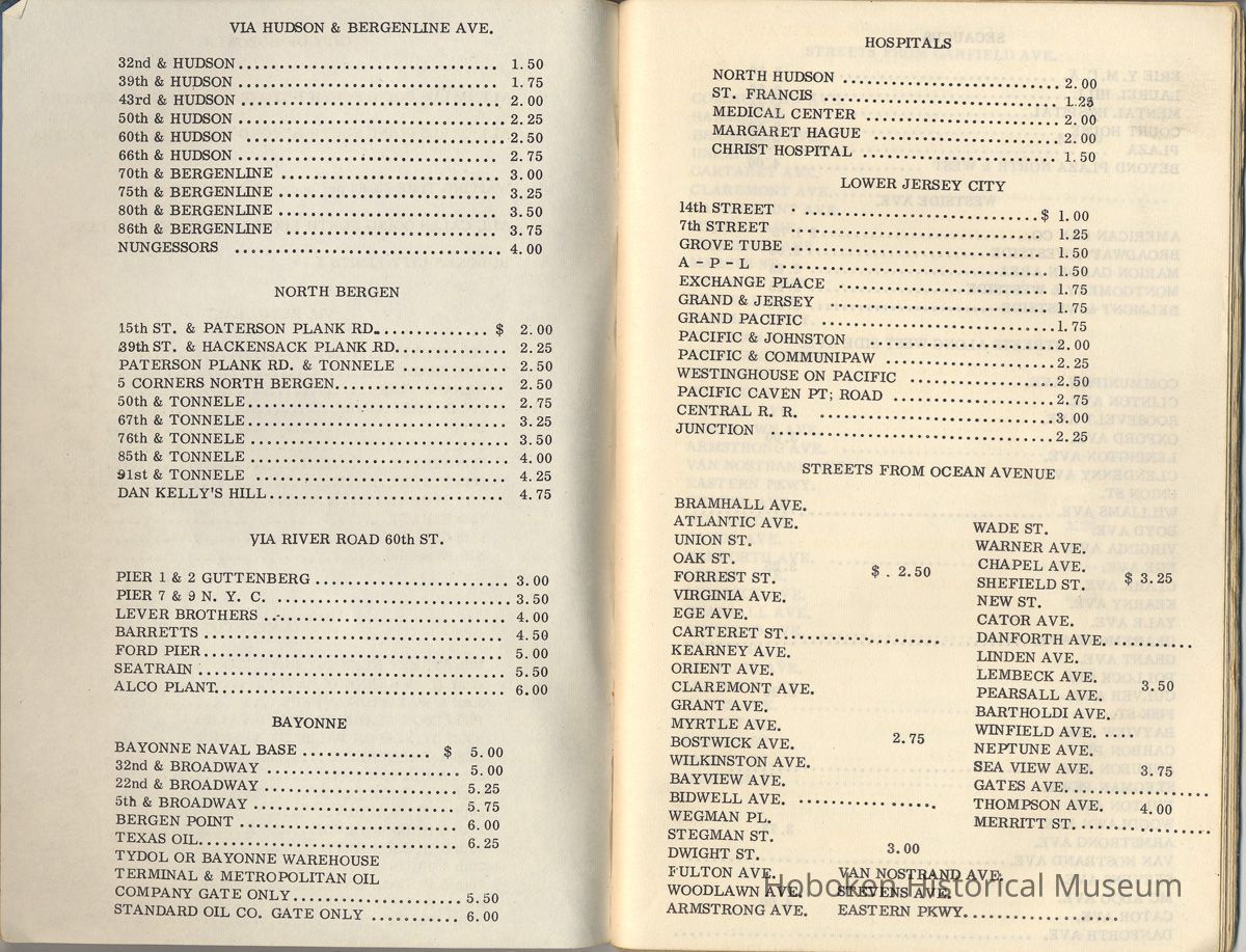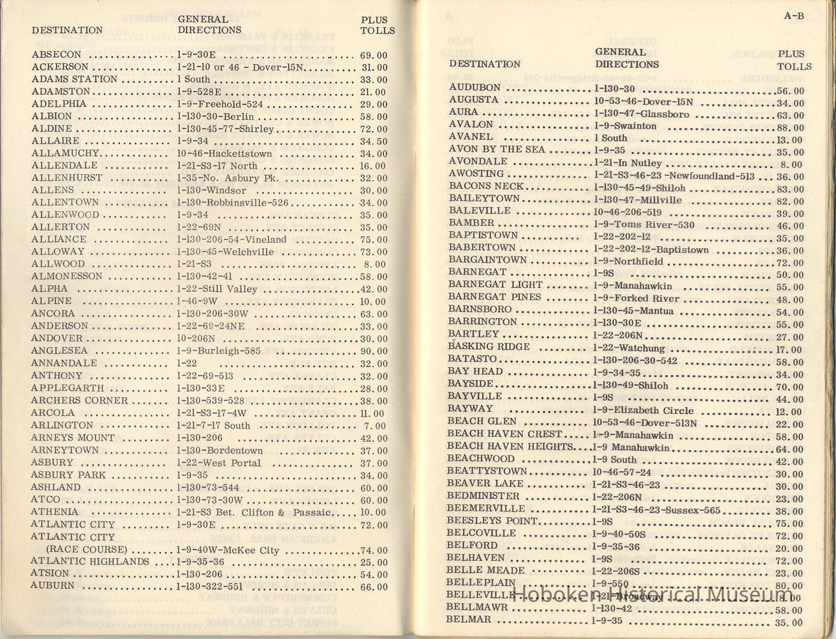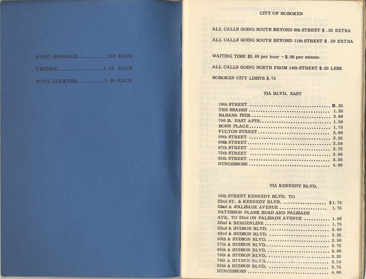 Hoboken New Jersey Taxi Directory to New Jersey - New York, Connecticut - Pennsylvania. Suggested Rates & Routes. 1966 Edition.