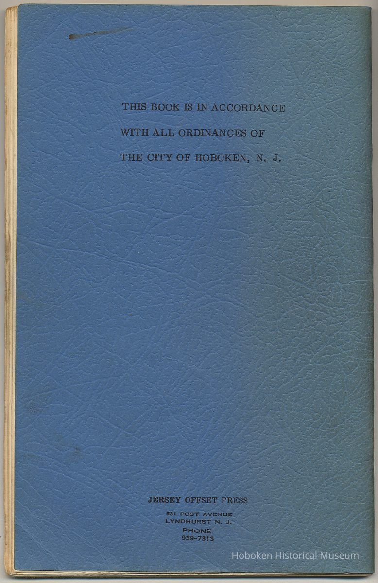 This book is in accordance with all ordinances of the City of Hoboken, N.J.