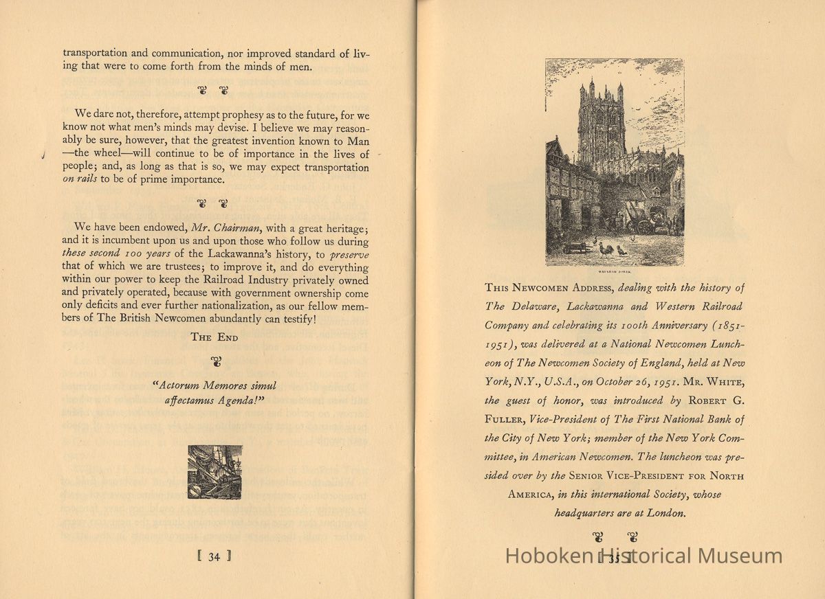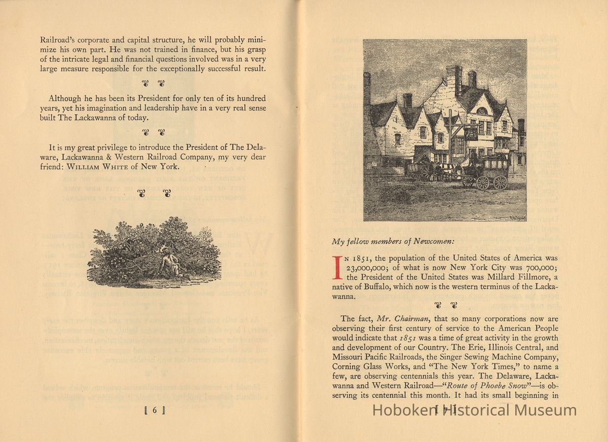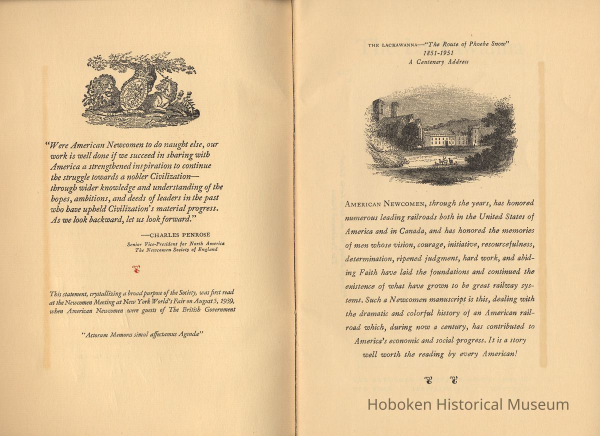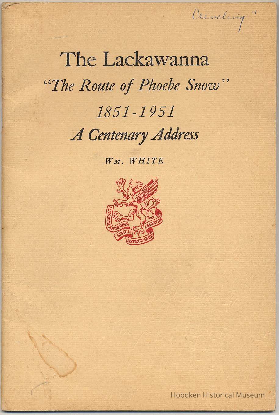 Booklet: The Lackawanna. "The Route of Phoebe Snow" 1851-1951. A Centenary Address. Wm. White. Newcomen Society, 1951.