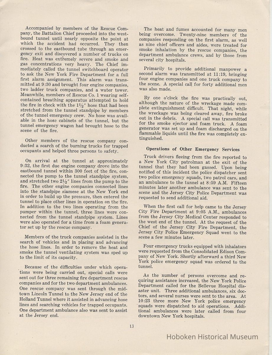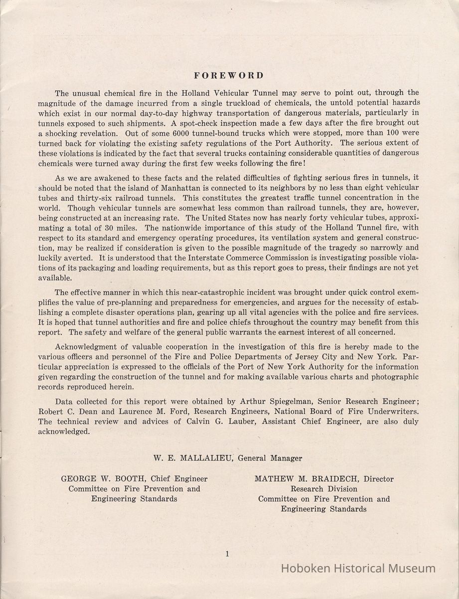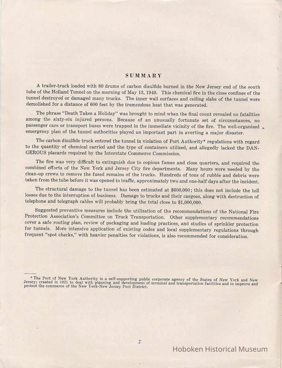 Report: The Holland Tunnel Chemical Fire. May 13, 1949. National Board of Fire Underwriters, N.Y., [July 1949.]