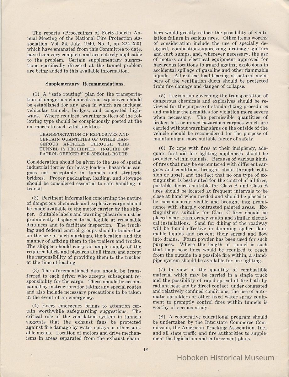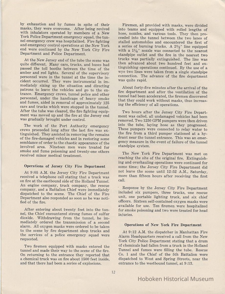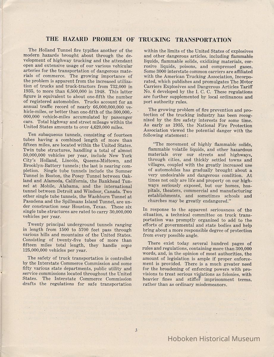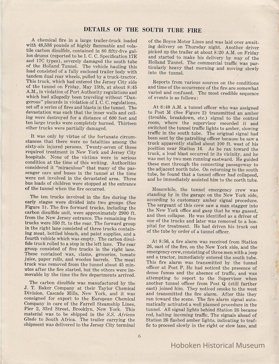 Report: The Holland Tunnel Chemical Fire. May 13, 1949. National Board of Fire Underwriters, N.Y., [July 1949.]