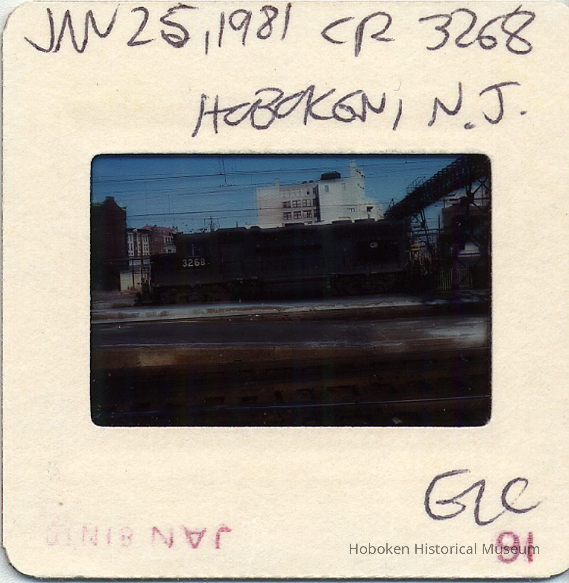 35mm Kodachrome mounted transparency. Photographer not indicated. Mount is dated Jan 81 by processor; modern holographic ink notation on mount: Jan 25, 1981 CR 3298 Hoboken N.J. GLC.