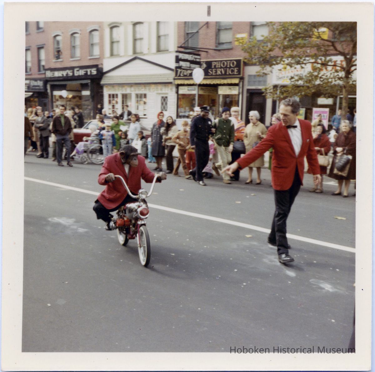 Color photos, 2, of a parade in 500 block of Washington St., Hoboken, n.d., ca. 1965-1975.