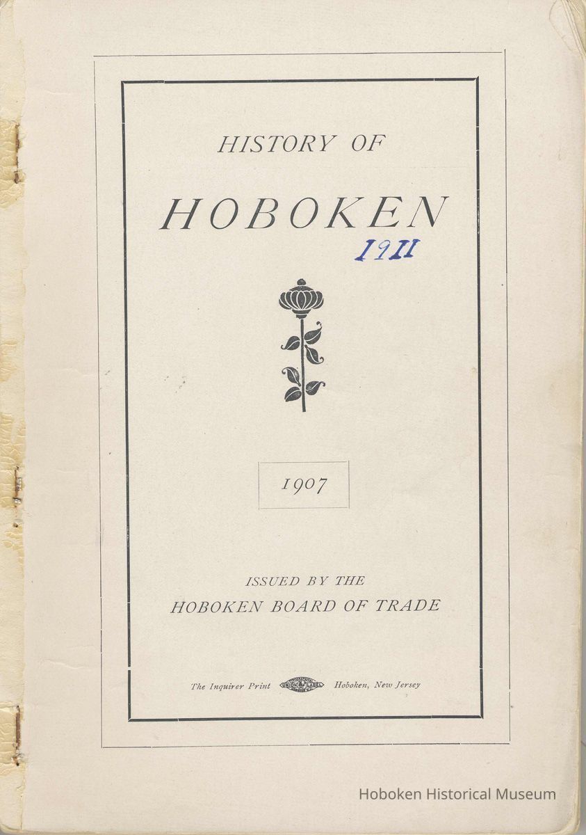 History of Hoboken. 1907. Issued by the Hoboken Board of Trade. 8vo, softcover issue.