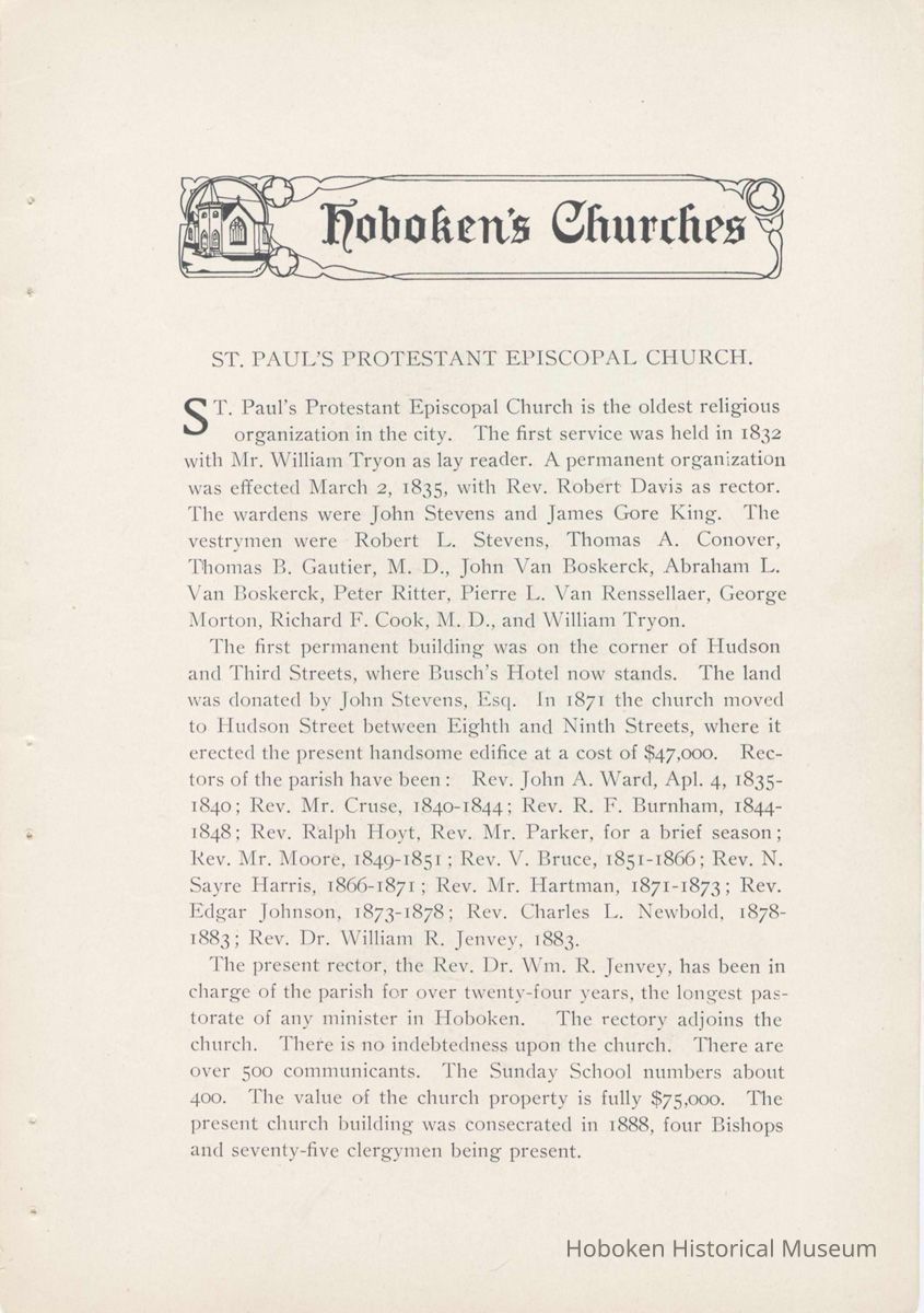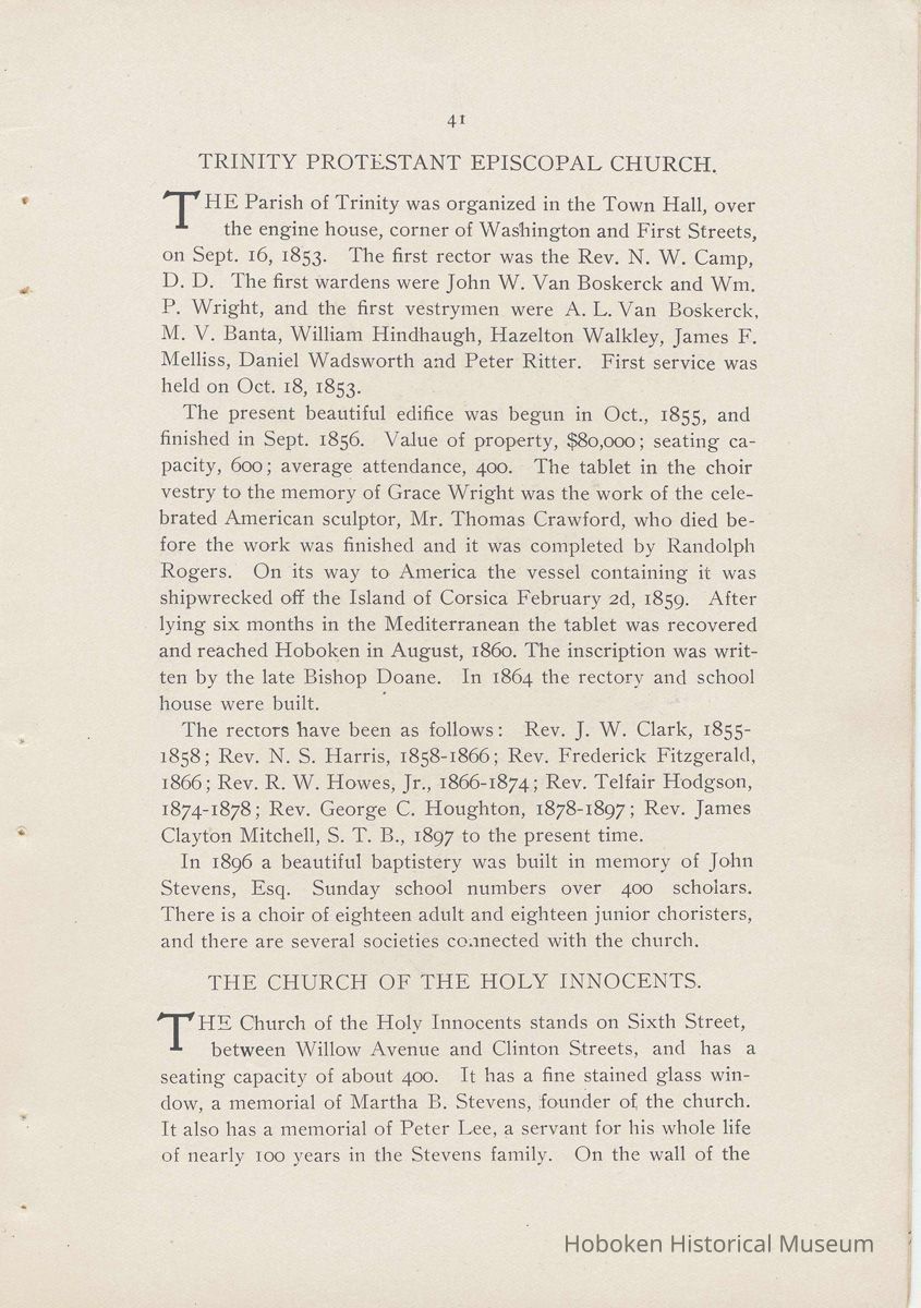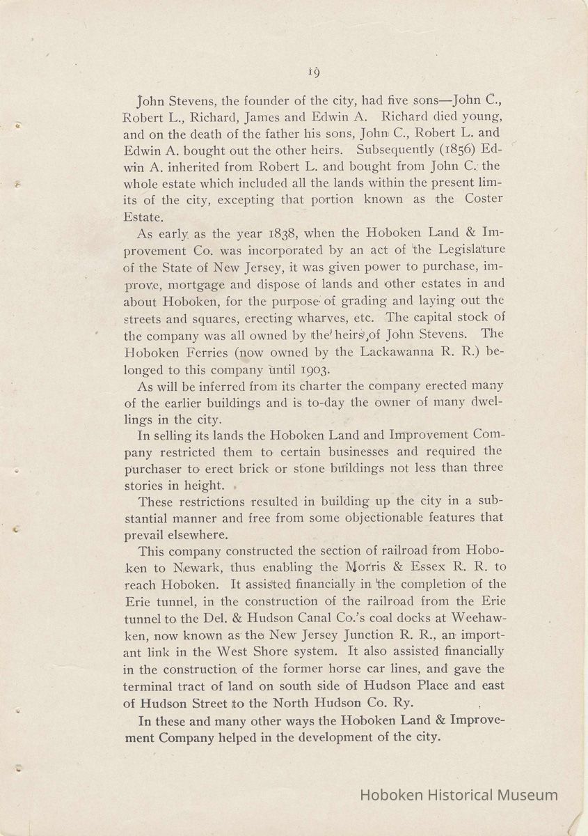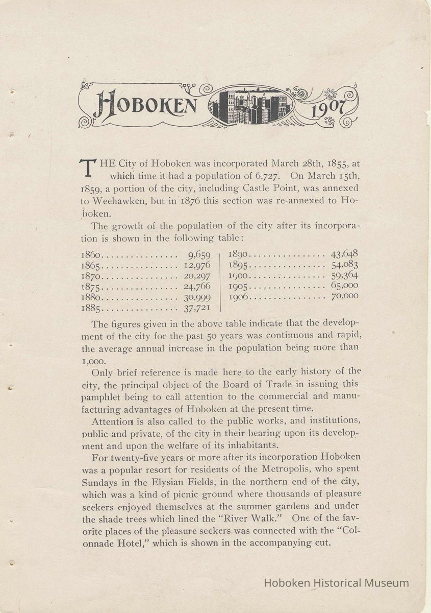History of Hoboken. 1907. Issued by the Hoboken Board of Trade.