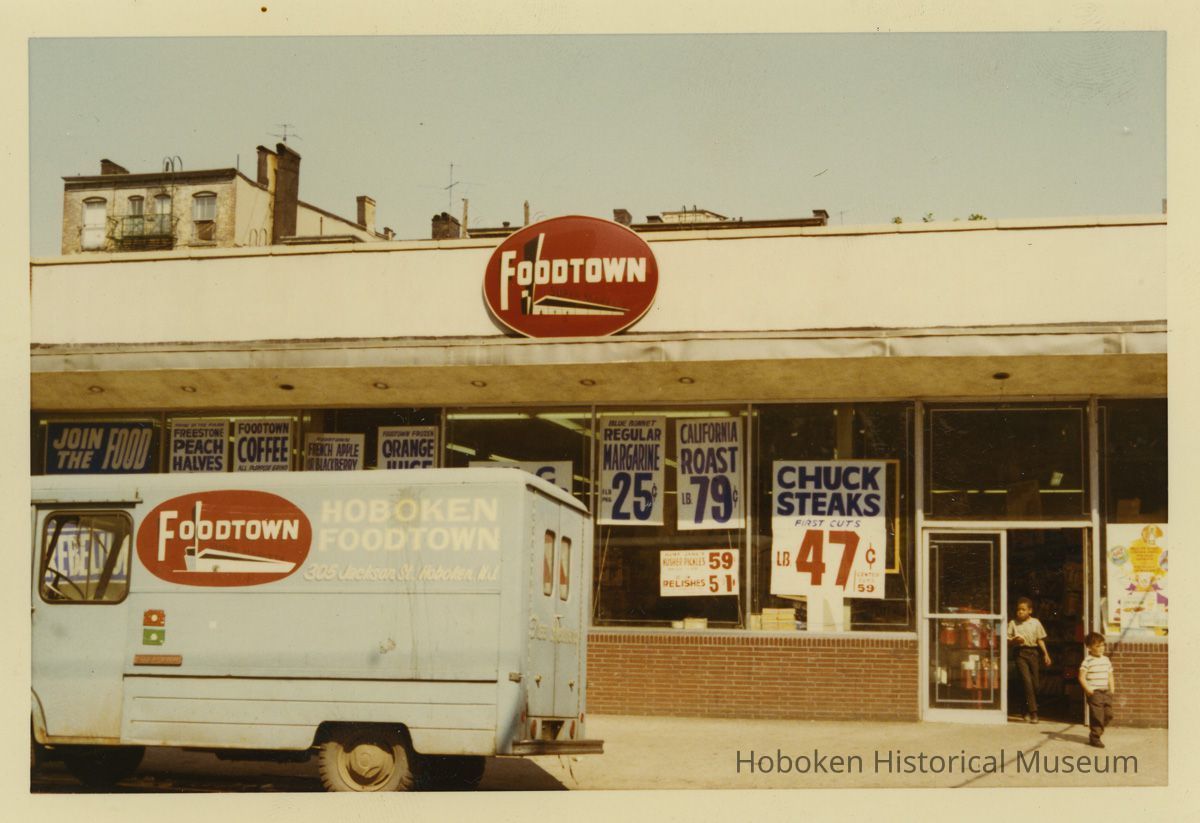 Color photograph of exterior of Foodtown of Hoboken supermarket, 305 Jackson St., Hoboken, no date, circa 1969.