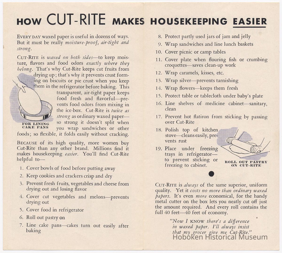 Cut-Rite Waxed Paper. Promotional brochure issued by Automatic Paper Machinery Co., Hoboken, n.d., ca. 1935-1940.