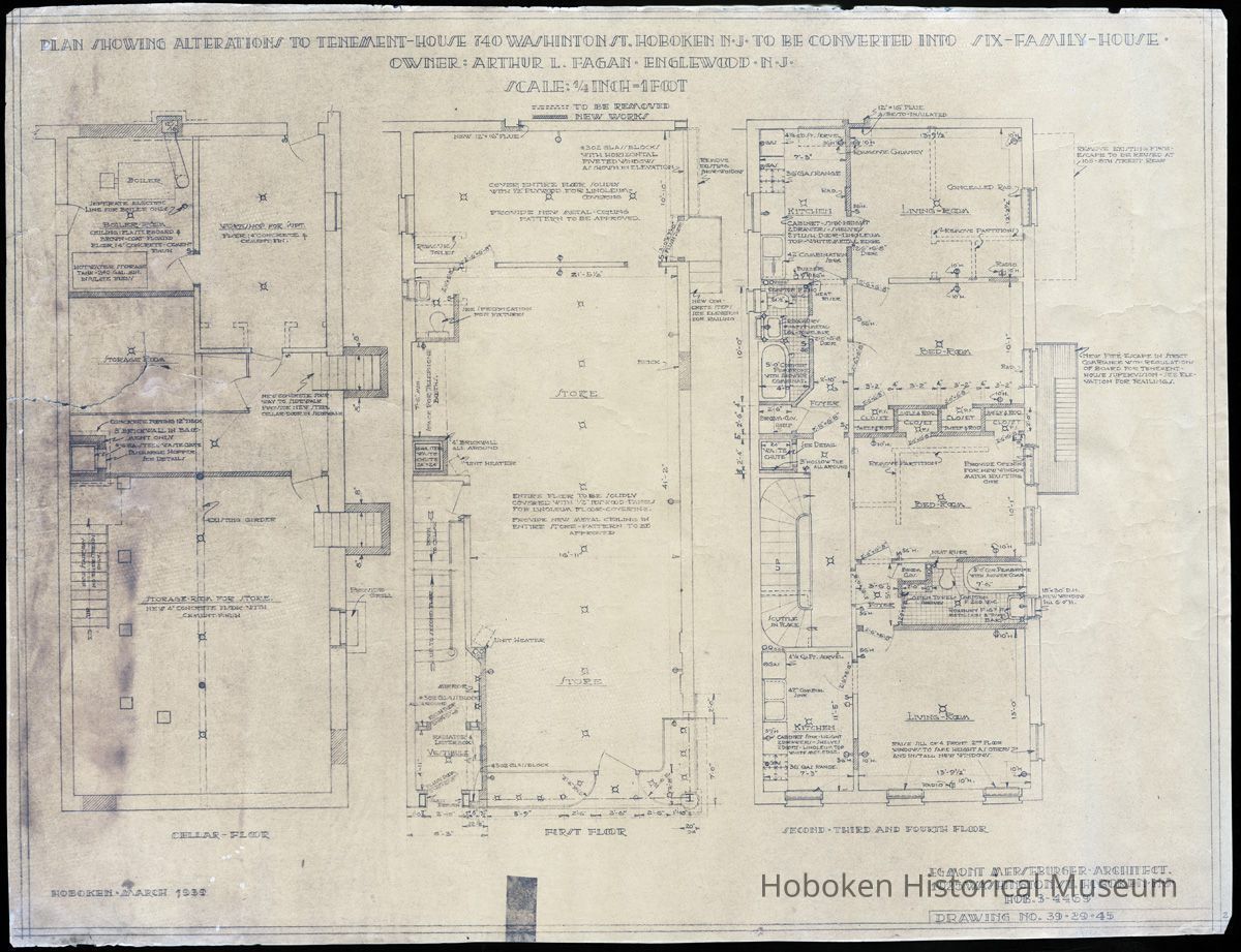 Plan Showing Alterations to Tenement 740 Washington St. Hoboken N.J. To Be Converted into Six-Family House