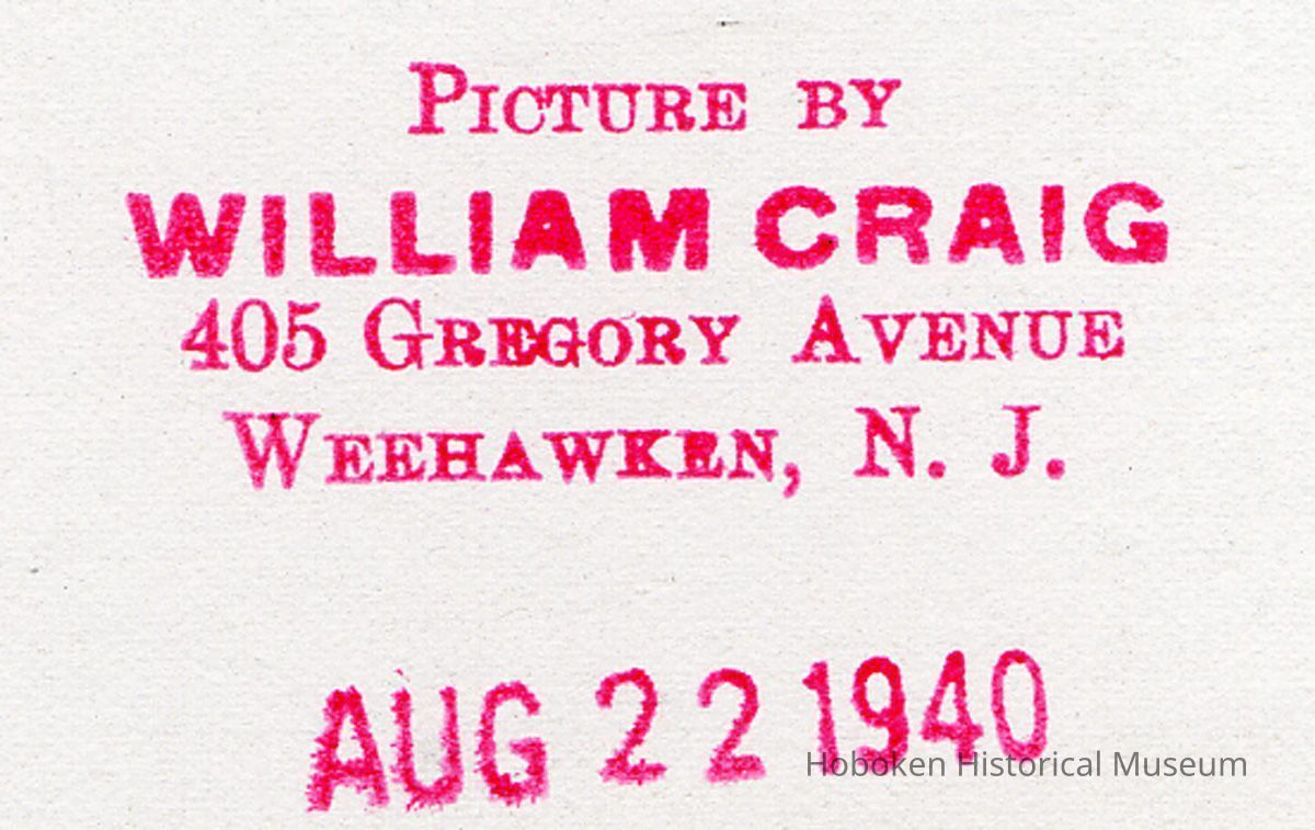 Black-and-white photo of tube for propeller drive shaft on large lathe, machine shop of Bethlehem Steel Shipyard, Hoboken Division, Aug. 22, 1940. 8" x 10" wide print. Photograph taken by William Craig. Reverse has photographer William Craig's ink stamp and ink stamped date.