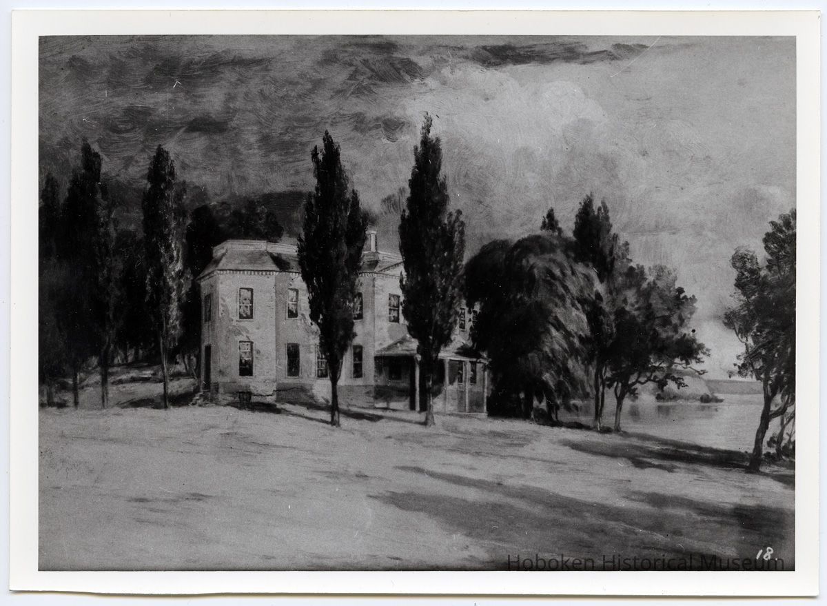 Photo 3: Villa Stevens. Painting, unsigned. No date. Marked in image at lower left: 18. Source of original image unstated and unknown.