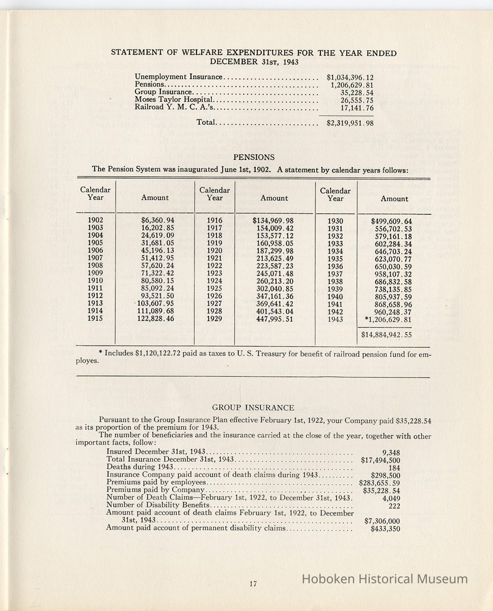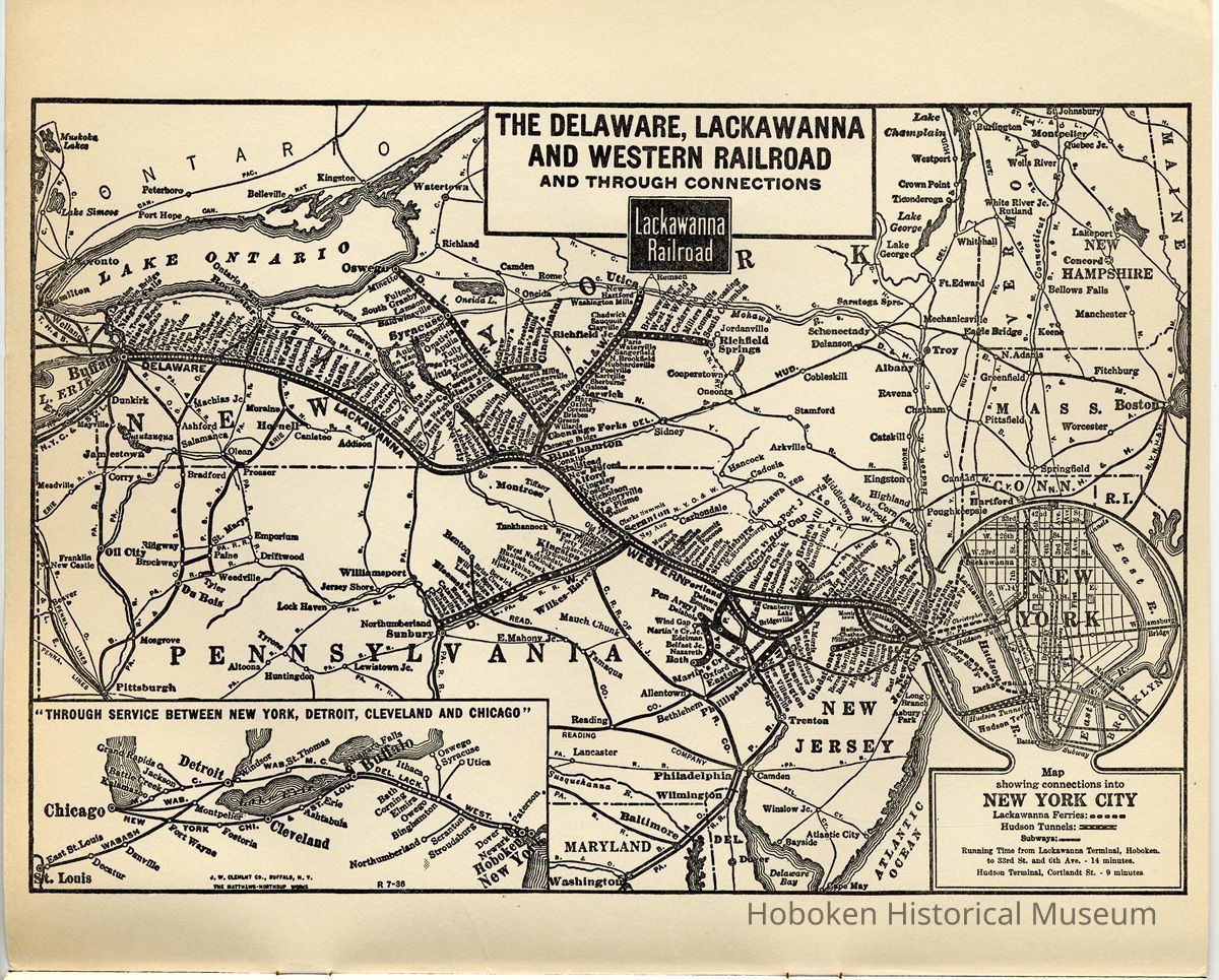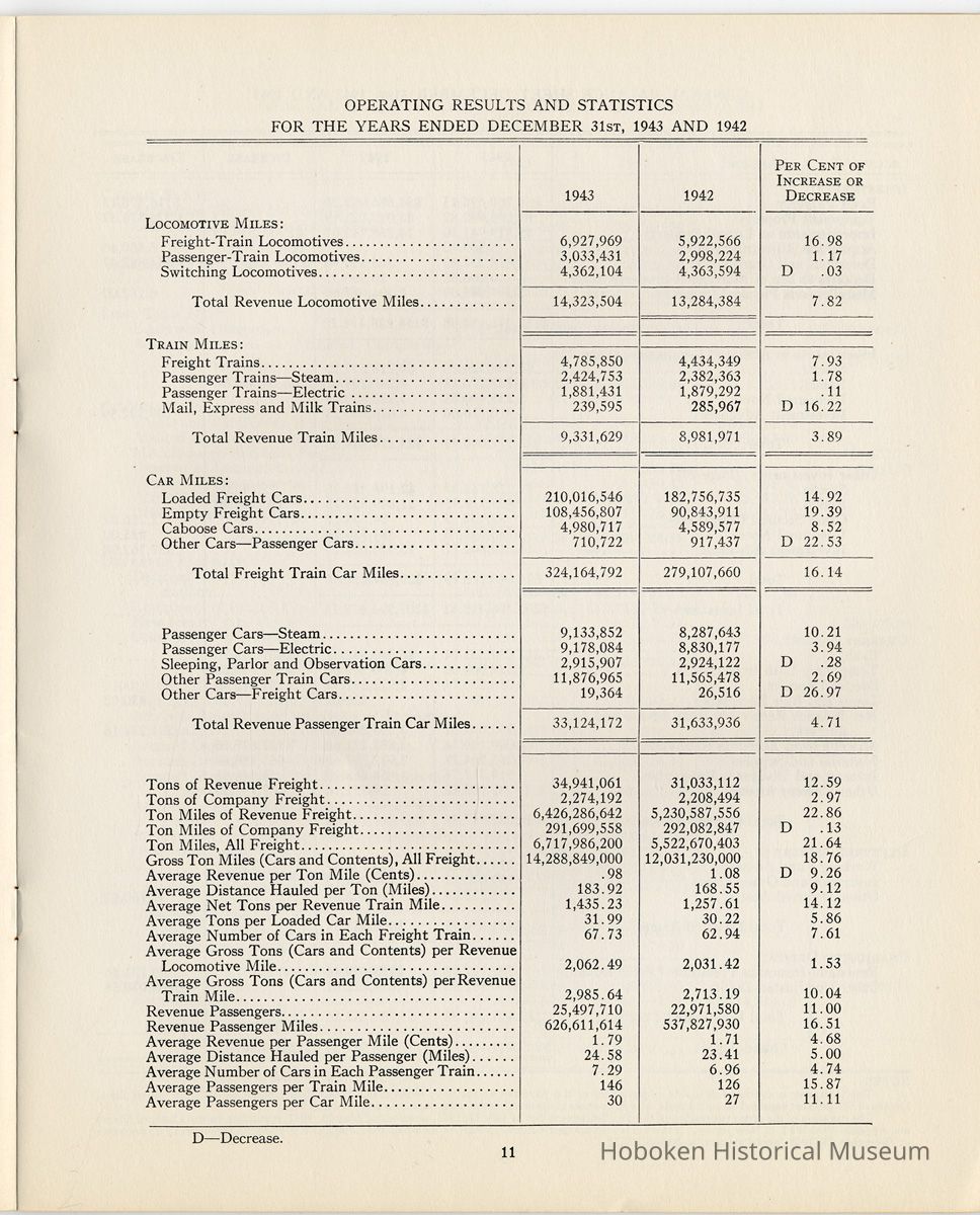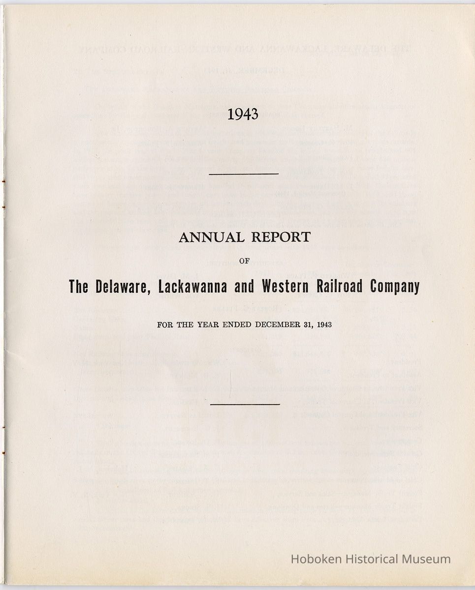 1943 Annual Report of the Delaware, Lackawanna and Western Railroad Company, for the year ended December 31, 1943. 4to booklet (9"x 11"). 29 pp. plus covers; color frontis "Employees Serving Their Country."