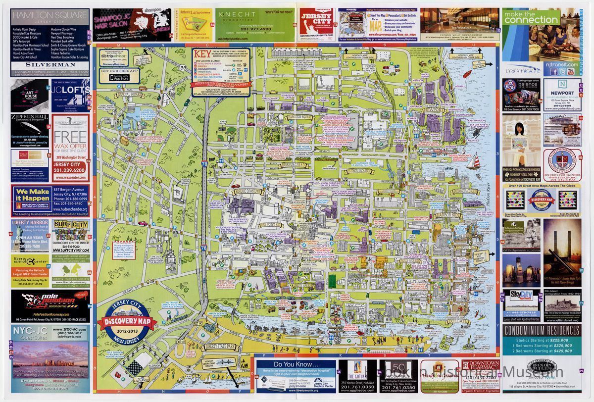 Discovery Map 2012-2013; Hoboken; Jersey City, New Jersey. Copyright 2012 by Discovery Map, Inc., New Hope, PA. Printed two sides, full color, 17" x 25", folded to 8-1/2" x 12-1/2". Three copies. PDF on file.