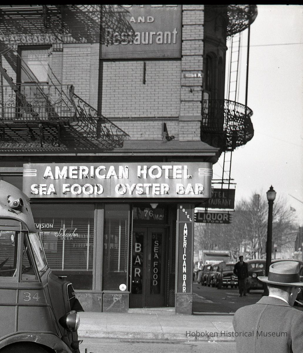 At the right is the American Hotel Barber Shop, 36 Hudson Place.
