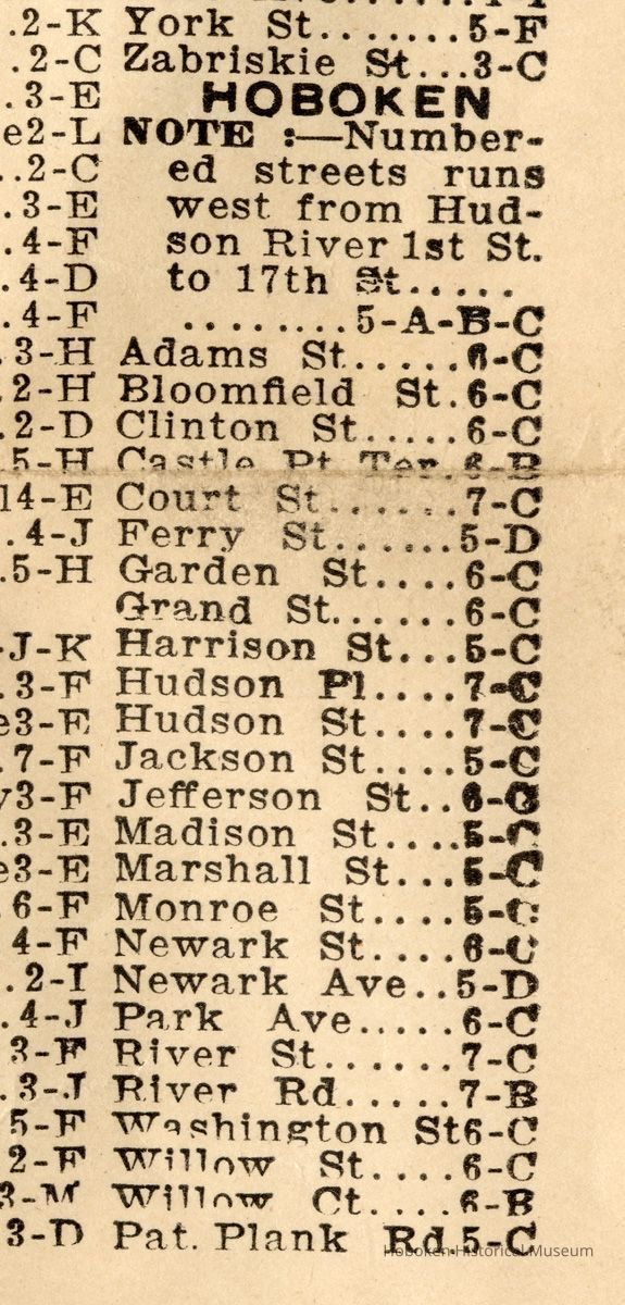 One Hoboken street not on map or in street index is Division Street.
