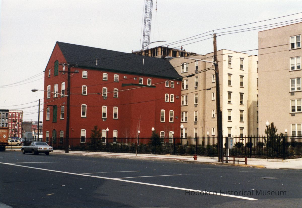 2: view northwest of north side of Observer Highway from Washington to Bloomfield St. (left). Note crane on Bloomfield St. and construction of Columbian Towers (76 Bloomfield).