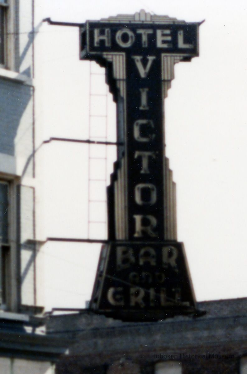 plus detail of hanging sign: Hotel Victor Bar and Grill