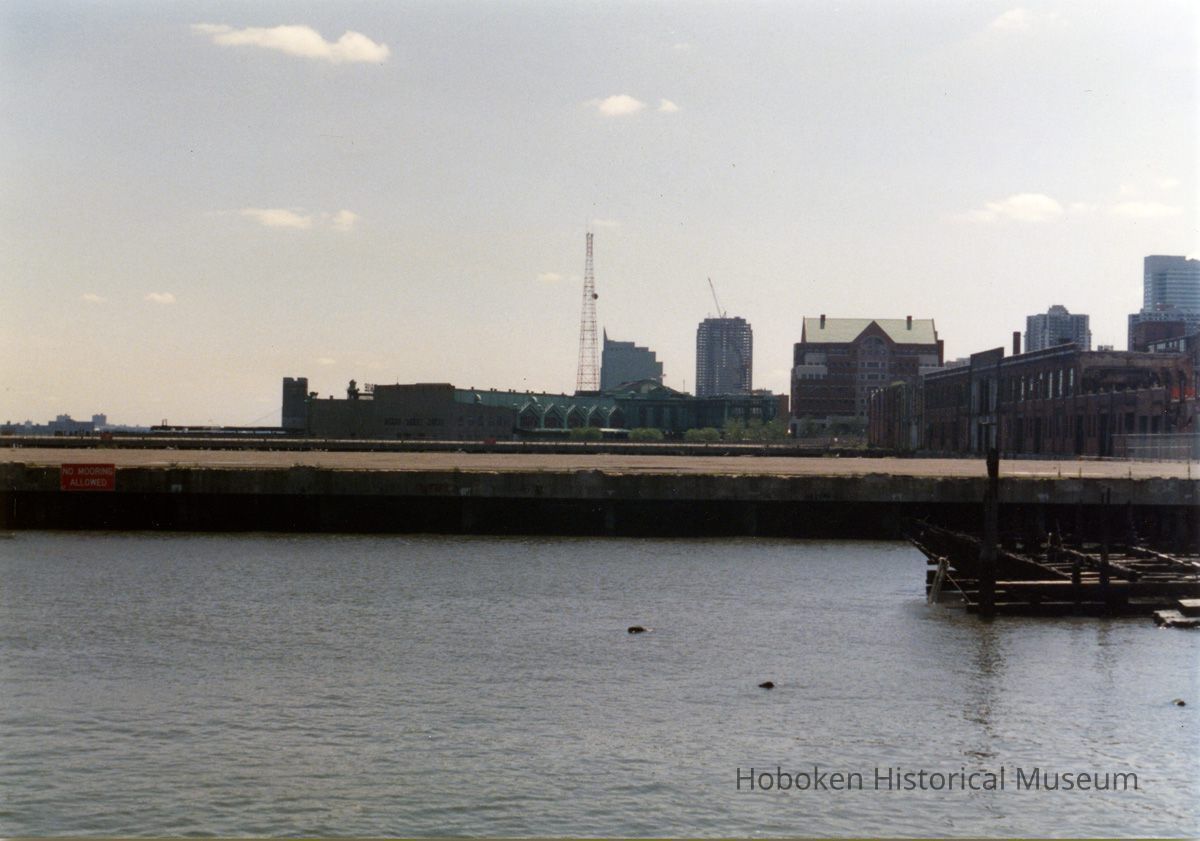 Color photos, 3, of waterfront with Castle point & former Port Authority Piers, Hoboken, Sept. 1991.