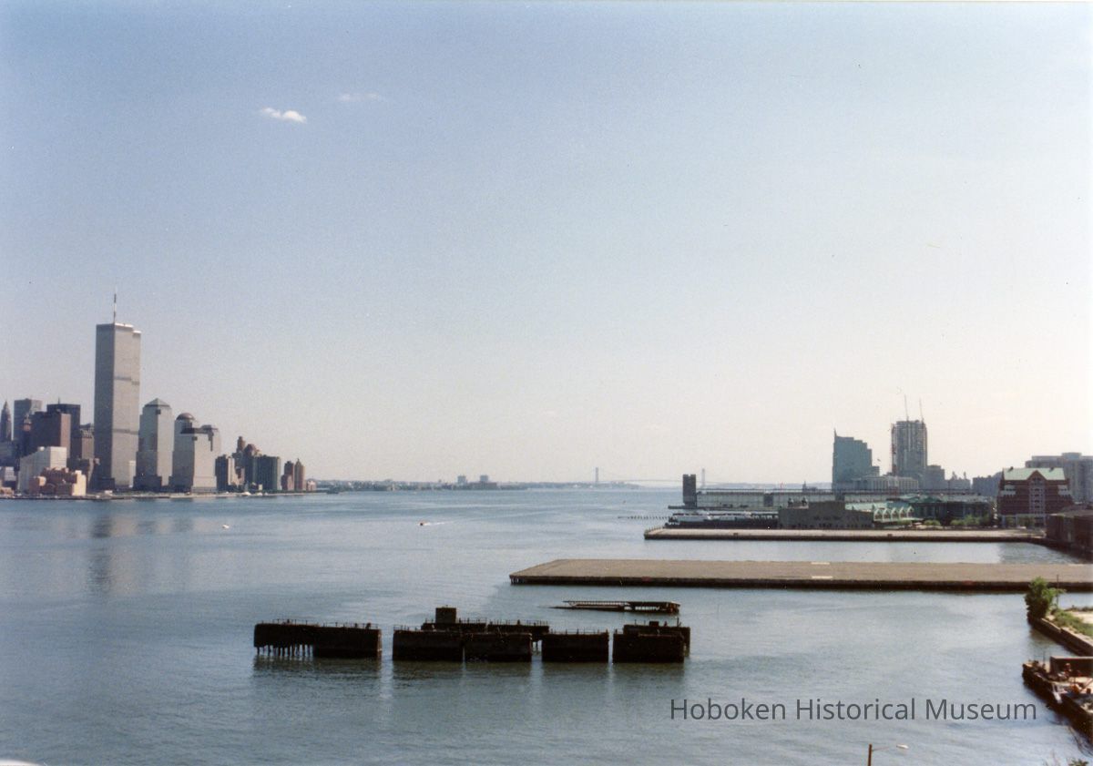Color photos, 3, of waterfront with Castle point & former Port Authority Piers, Hoboken, Sept. 1991.