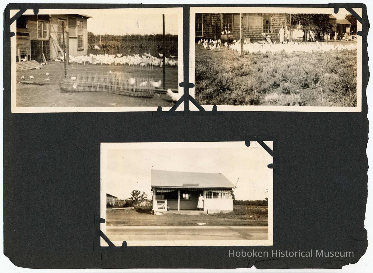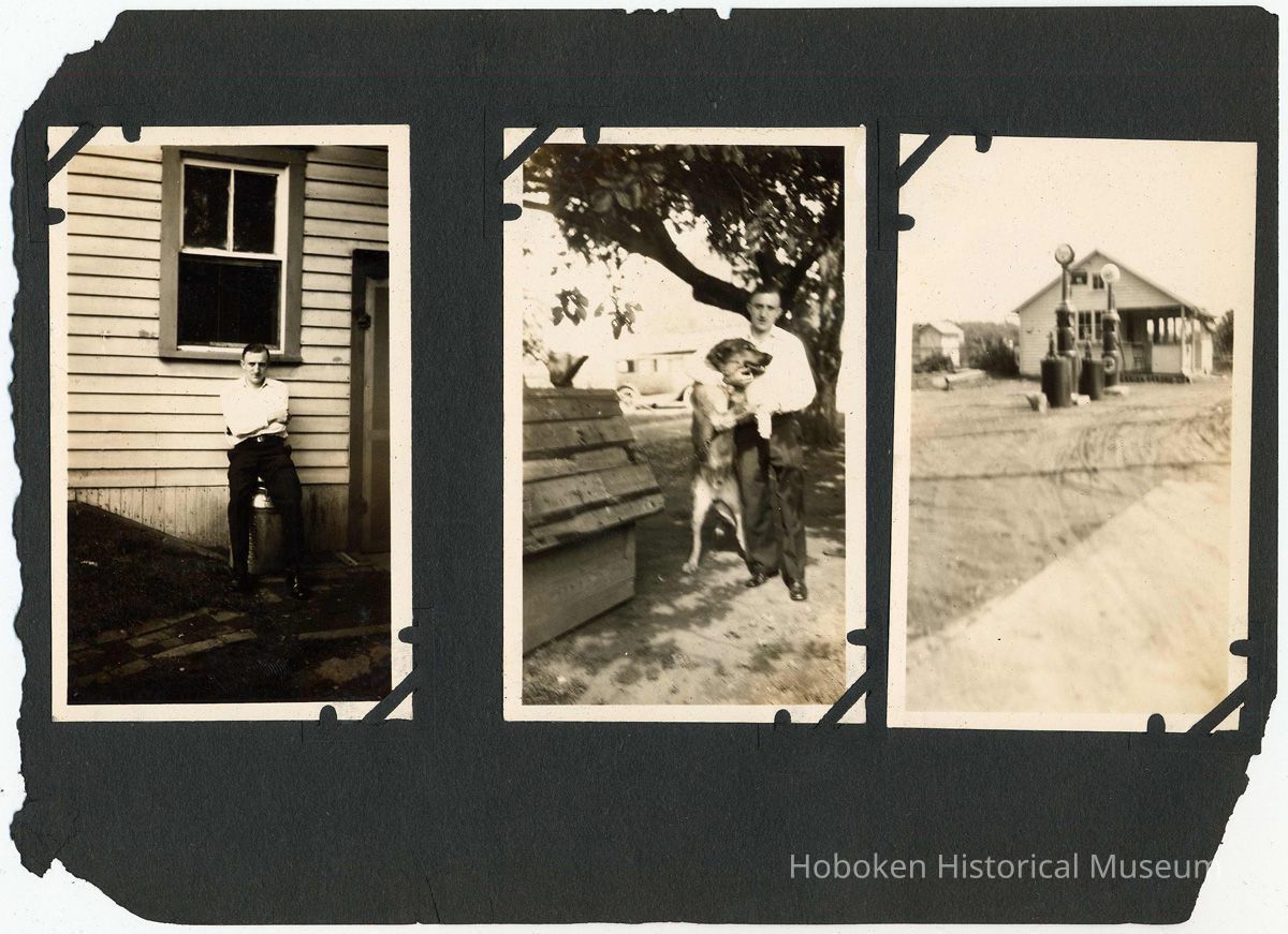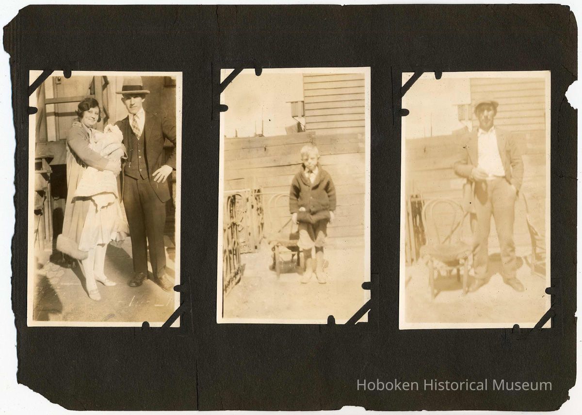 Forty-six black-and-white photos carefully mounted with photo corners. The size and number of images vary from page to page. Brittle black paper ca. 7" x 10" long, numerous edge chips and not bound. There are no captions and the backs of the few that were checked did not reveal any information. Where a page is noted as blank, it did not have any evidence of anything ever attached to it. While some of the images appear to have been taken in Hoboken, many were not. Each page is imaged in full with the leaf sequence related to images of similar sizes.